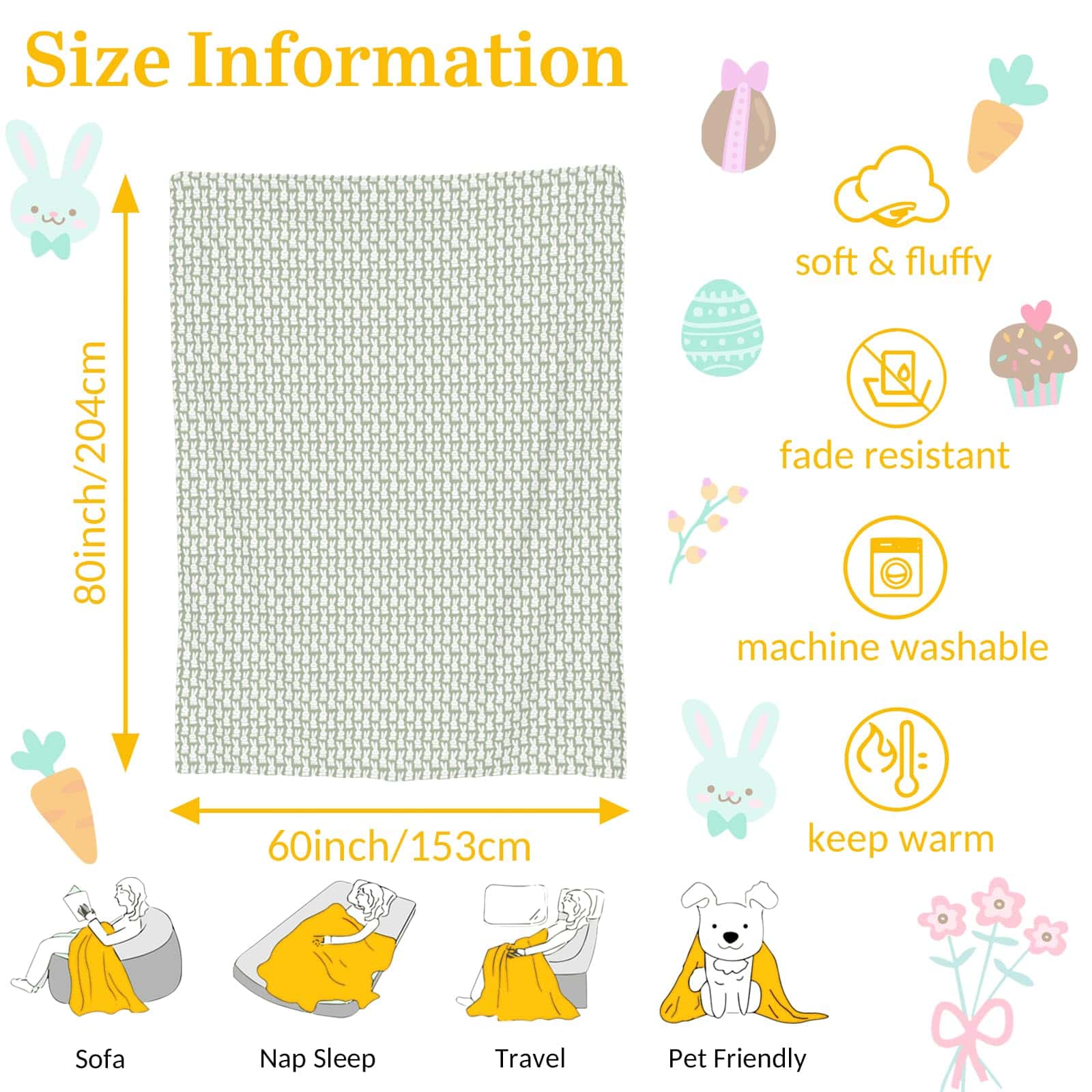 Esta manta de Pascua tiene el tamaño perfecto para uso personal, ya sea que estés acurrucado en el sofá, echando una siesta, o manteniéndote cómodo en tu auto.