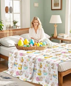 Perfecta para celebraciones de Pascua o como un sincero regalo de inauguración, esta manta encantadora mezcla el espíritu festivo con la practicidad. Úsala para decorar tu espacio, mantenerte cálido mientras te relajas, o como un cómodo compañero para viajar.