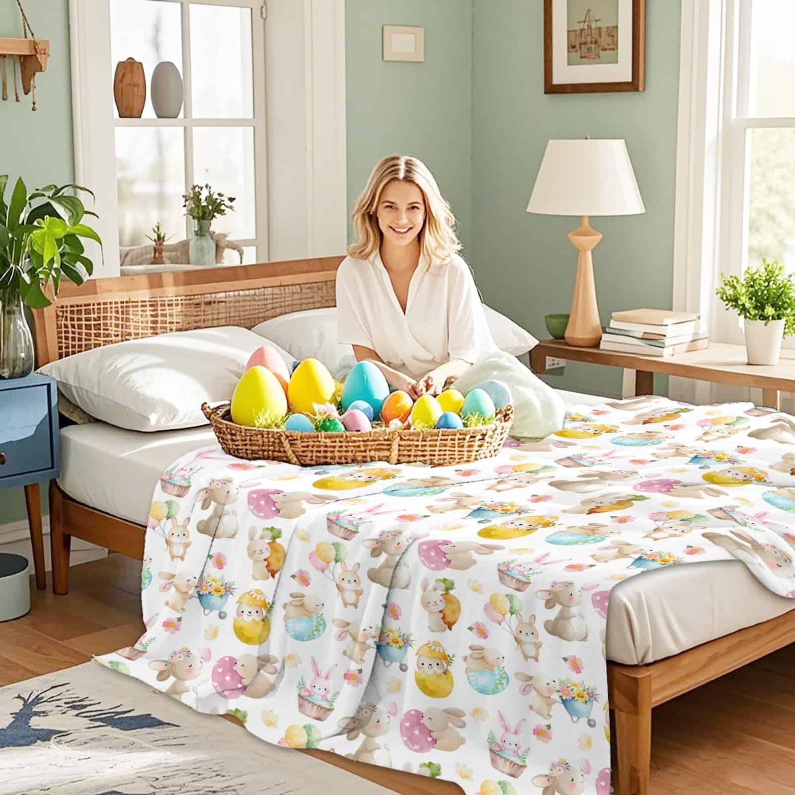 ¡Celebra la Pascua con estilo y comodidad con esta encantadora manta peluda, una mezcla de encanto festivo y acogedora cotidianeidad!