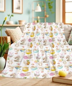 Añade calidez y un toque de magia de Pascua a tu hogar con nuestra bella manta peluda diseñada. Con delicados conejitos y flores acuarelas, esta manta es perfecta para celebrar la temporada o disfrutar de comodidad durante todo el año.