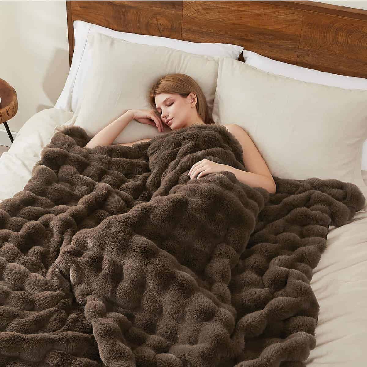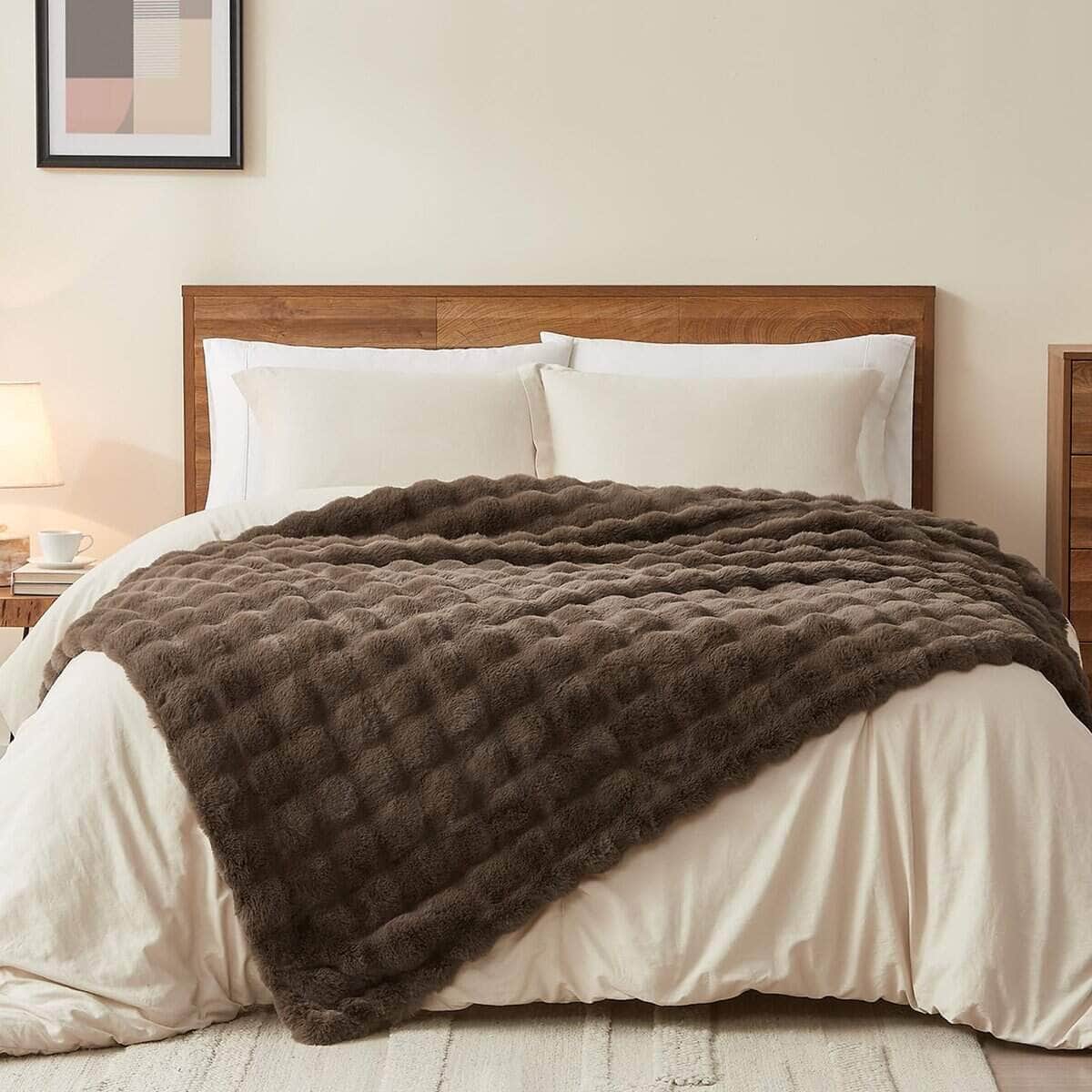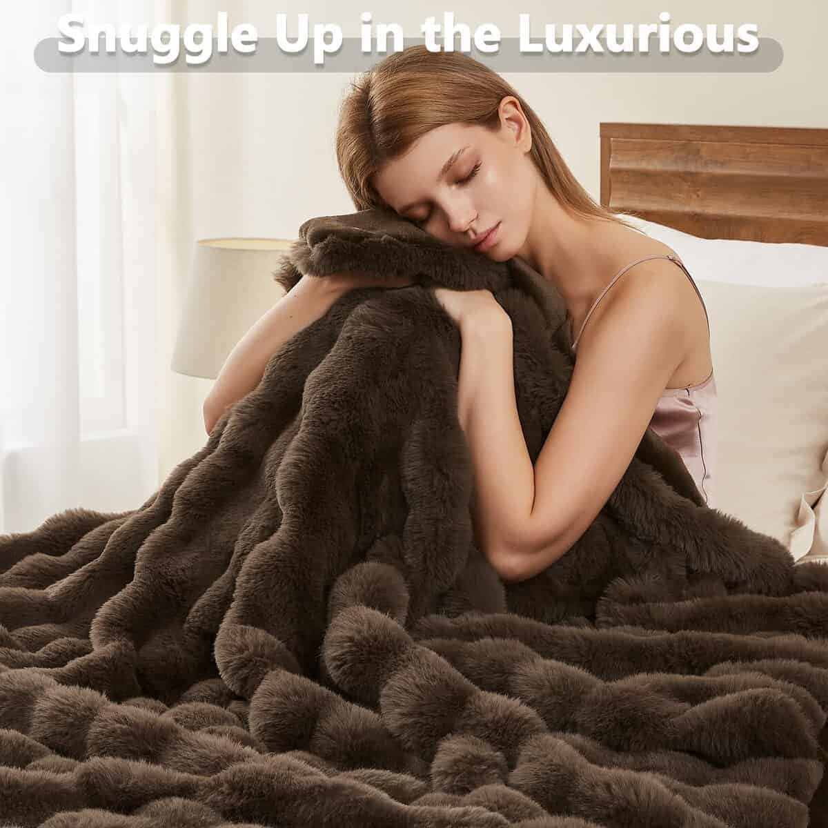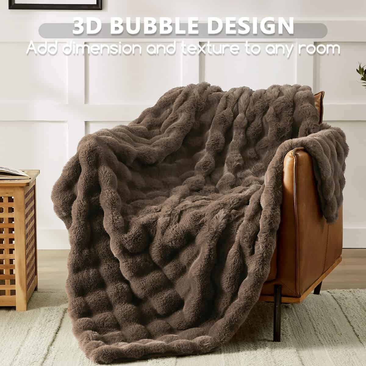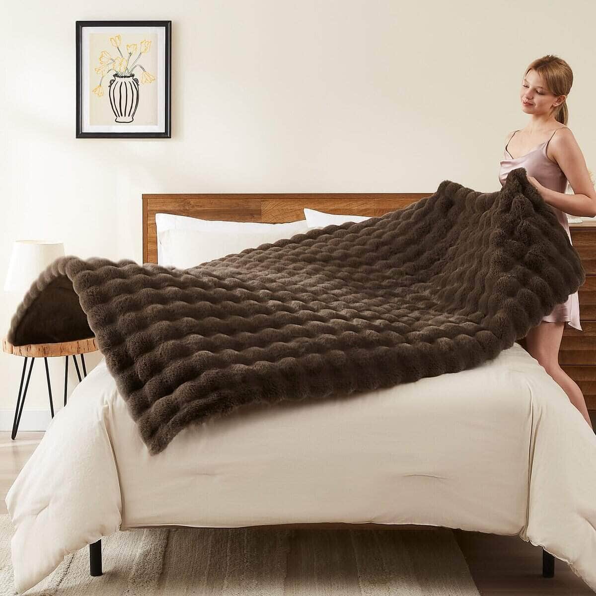 2. Elegante y Decorativa: Nuestra manta de piel falsa de conejo está diseñada de manera única con un diseño de burbujas de ondas altas y bajas, junto con la felpa de piel de conejo falsa completamente de poliéster que le da a esta manta gruesa un aspecto extra lujoso y elegante que se mezcla sin esfuerzo con cualquier estilo interior, ya sea en un dormitorio, sala de estar, habitación de invitados, sofá o sillón, esta manta de piel esponjosa sin duda será el centro de atención.