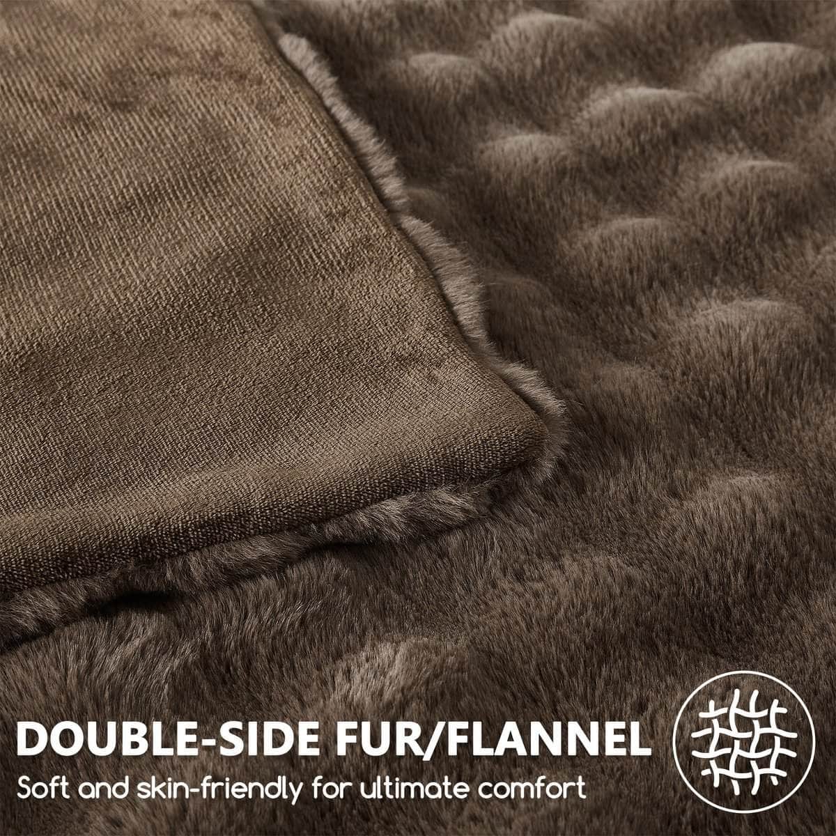 3. Diseño Reversible y Grosor: Nuestra manta estética de piel sintética está hecha de tela de piel de conejo de 650GSM y forro de felpa de franela de 200GSM, esta manta es absolutamente acogedora y gruesa, y la tela es resistente a la decoloración, anti-pilling y antiestática, proporcionando suavidad y durabilidad duraderas. La hermosa tela de doble cara premium hace que la manta de piel de conejo de burbujas sea reversible para un calor extra, un equilibrio ideal entre peso y calor para los meses de invierno.