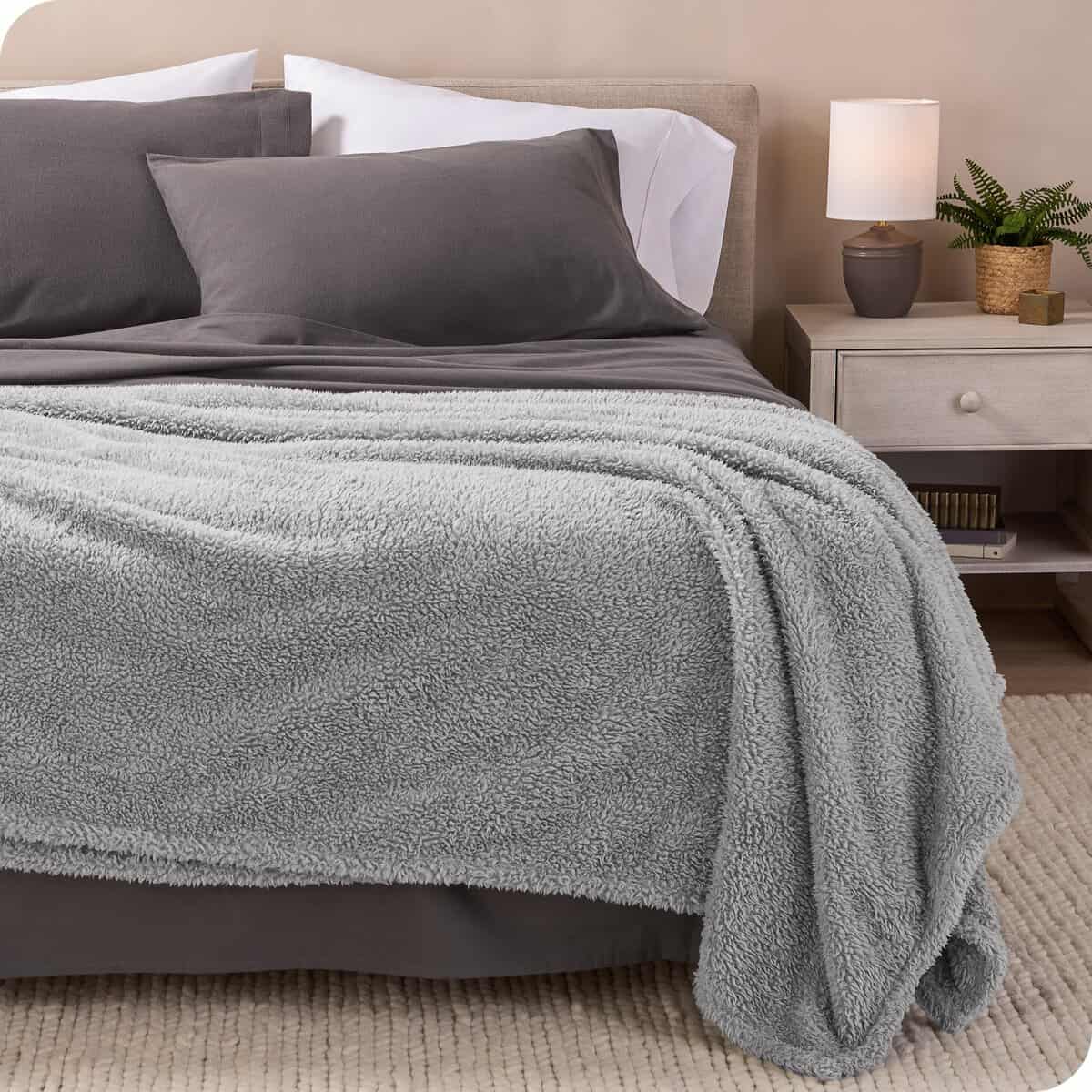 Manta de piel sintética Bare Home – Manta -Gris Claro Sólido