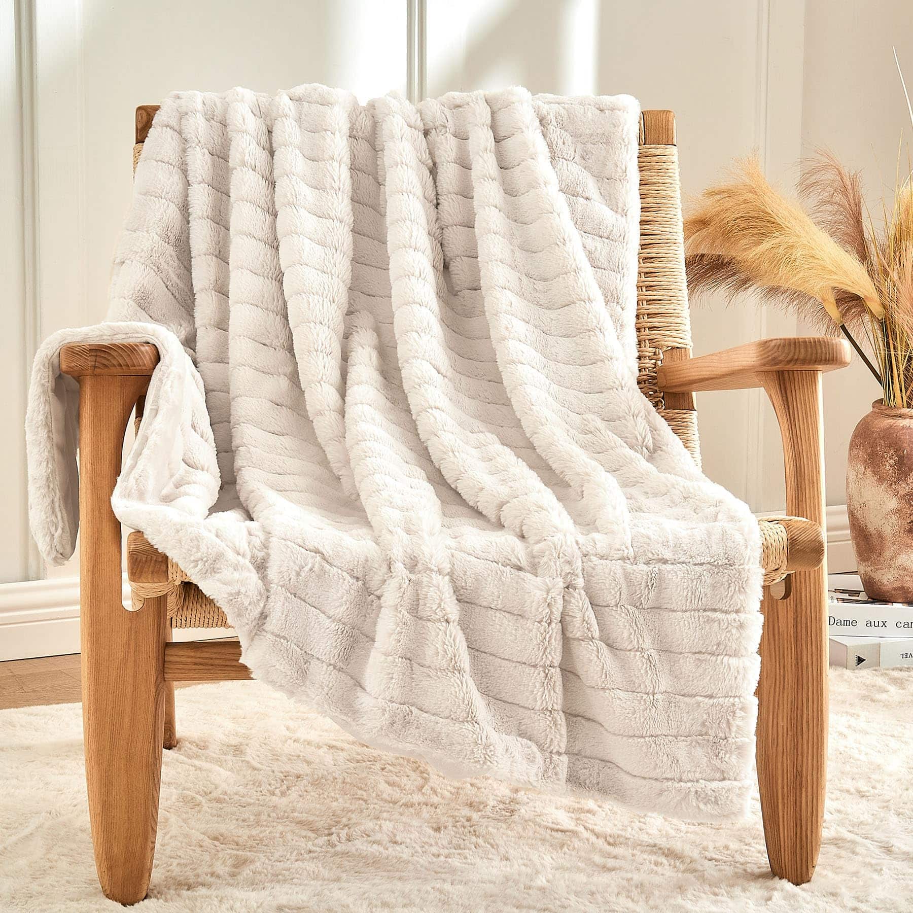 2. Diseño texturizado sutil: El patrón acanalado ancho, creado utilizando una técnica de piel suave precisa, agrega una textura refinada y discreta a la manta. El diseño minimalista de textura proporciona una apariencia elegante pero no monótona, mejorando la decoración de cualquier habitación. También es un regalo único para familias y amigos.