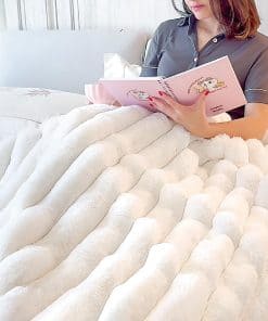 3. Gruesa y cálida: Con el grosor perfecto, esta manta te mantiene cálido y cómodo durante todo el año. Gruesa pero no pesada, mientras que cálida pero no sofocante. Envolverte en esta manta esponjosa, deja que el calor envuelva tu cuerpo en noches frías de otoño o invierno. Cubre tu regazo con suavidad y comodidad para disfrutar fuera de casa.
