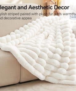 2. Decoración de habitaciones lujosas: La piel peluda combinada con la textura a rayas 3D, crea decoraciones lujosas y estéticas, añadiendo nuevo encanto al hogar. La lujosa manta peluda a rayas trae comodidad leisure, llenando la habitación de confort. Las suntuosas mantas de piel falsa también son regalos considerados y conmovedores para familias y amigos.