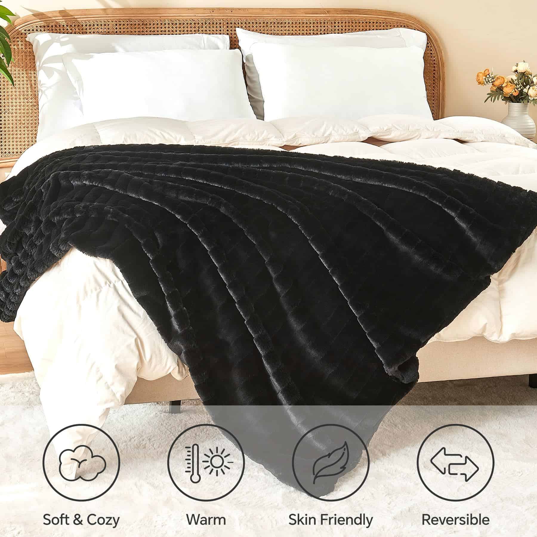 1. Comodidad Suave y Suave: Con un frente de piel de conejo falso de 450GSM con un amplio patrón acanalado, esta manta esponjosa ofrece una textura suave y aterciopelada. El respaldo ultra suave de 170GSM complementa el frente, brindando una sensación delicada y lujosa que acaricia suavemente la piel. 2. Diseño Texturizado Sutil: El patrón acanalado ancho, creado utilizando una técnica precisa de piel, agrega una textura refinada y discreta a la manta. El diseño de textura minimalista proporciona una apariencia elegante pero no monótona, mejorando la decoración de cualquier habitación. También es un regalo único para familias y amigos. 3. Grueso y Cálido: Con el grosor perfecto, esta manta esponjosa te mantiene abrigado y comfortable durante todo el año. Grueso pero no pesado, mientras que cálido pero no agobiante. Envolverte en esta manta mullida permite que el calor envuelva tu cuerpo en noches frías de otoño o invierno. Cubre tu regazo con suavidad y comodidad para disfrutar al aire libre. 4. Usos Versátiles: No solo para echarse una siesta cómoda en el trabajo o ver series de TV en el sofá, sino también para usar y llevar al aire libre, esta manta suave y acogedora es un compañero perfecto para la comodidad y la facilidad en el tiempo de descanso. 5. Fácil Cuidado: Lavar a máquina en agua fría en un ciclo suave y secar a baja temperatura. No utilizar detergentes con cloro. No limpiar en seco ni planchar.