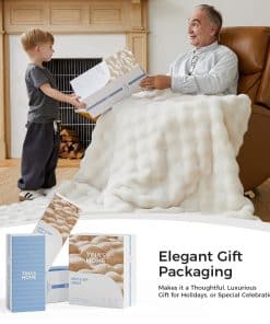 4. Empaque listo para regalo: Elegantemente empaquetada, esta manta es un regalo perfecto para seres queridos en ocasiones especiales. Ya sea para cumpleaños, fiestas de fin de año o fiestas de inauguración, su atractivo visual y su uso práctico seguramente deleitarán a quien la reciba.