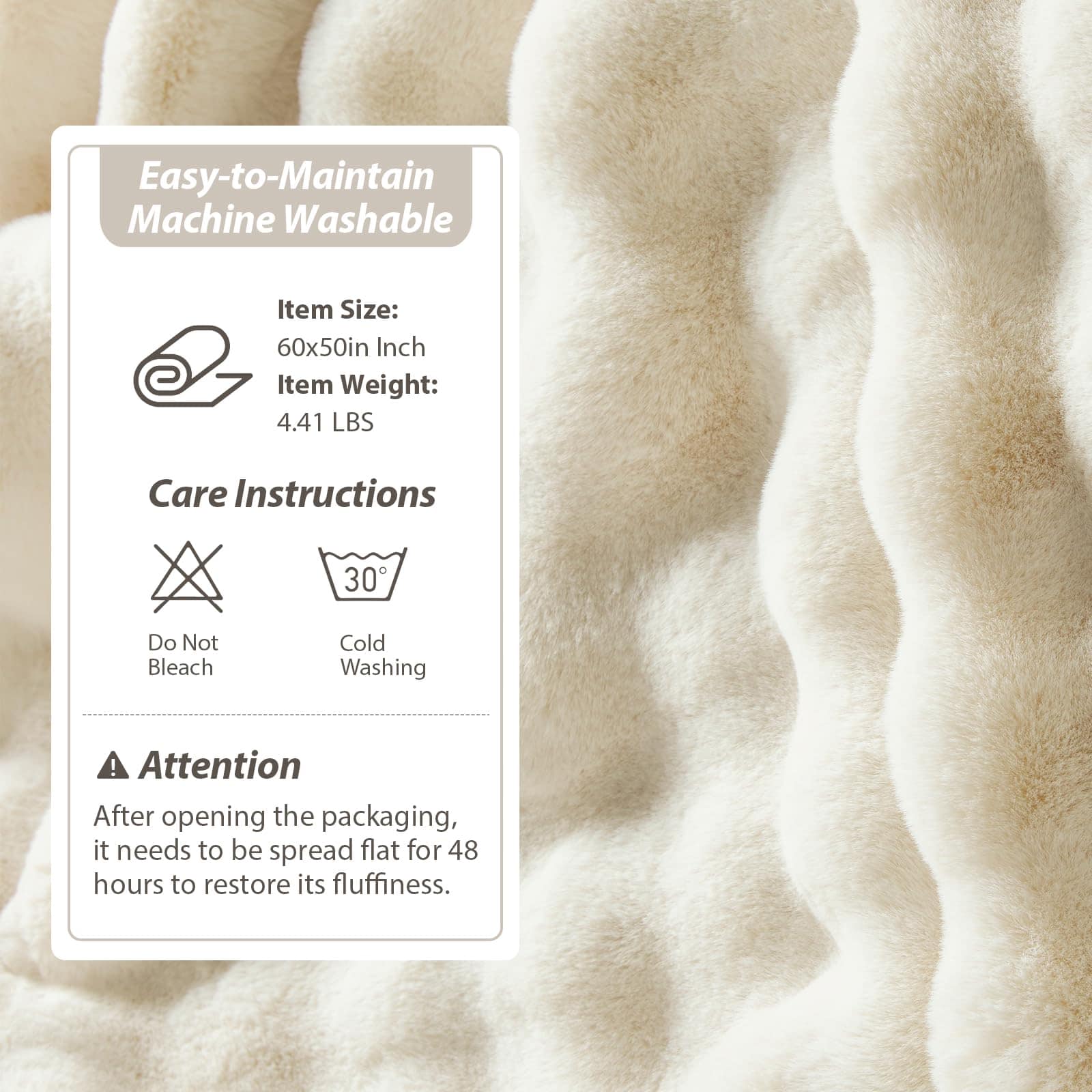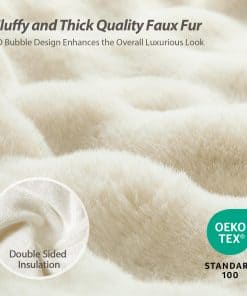 1. Suave y lujosa: Nuestra manta de piel sintética de conejo con textura de burbujas está hecha con 1000GSM de piel de conejo sintética esponjosa y suave felpa de micro mink, que es anti-decoloración, anti-desprendimiento y antiestática, proporcionando suavidad y durabilidad duraderas.