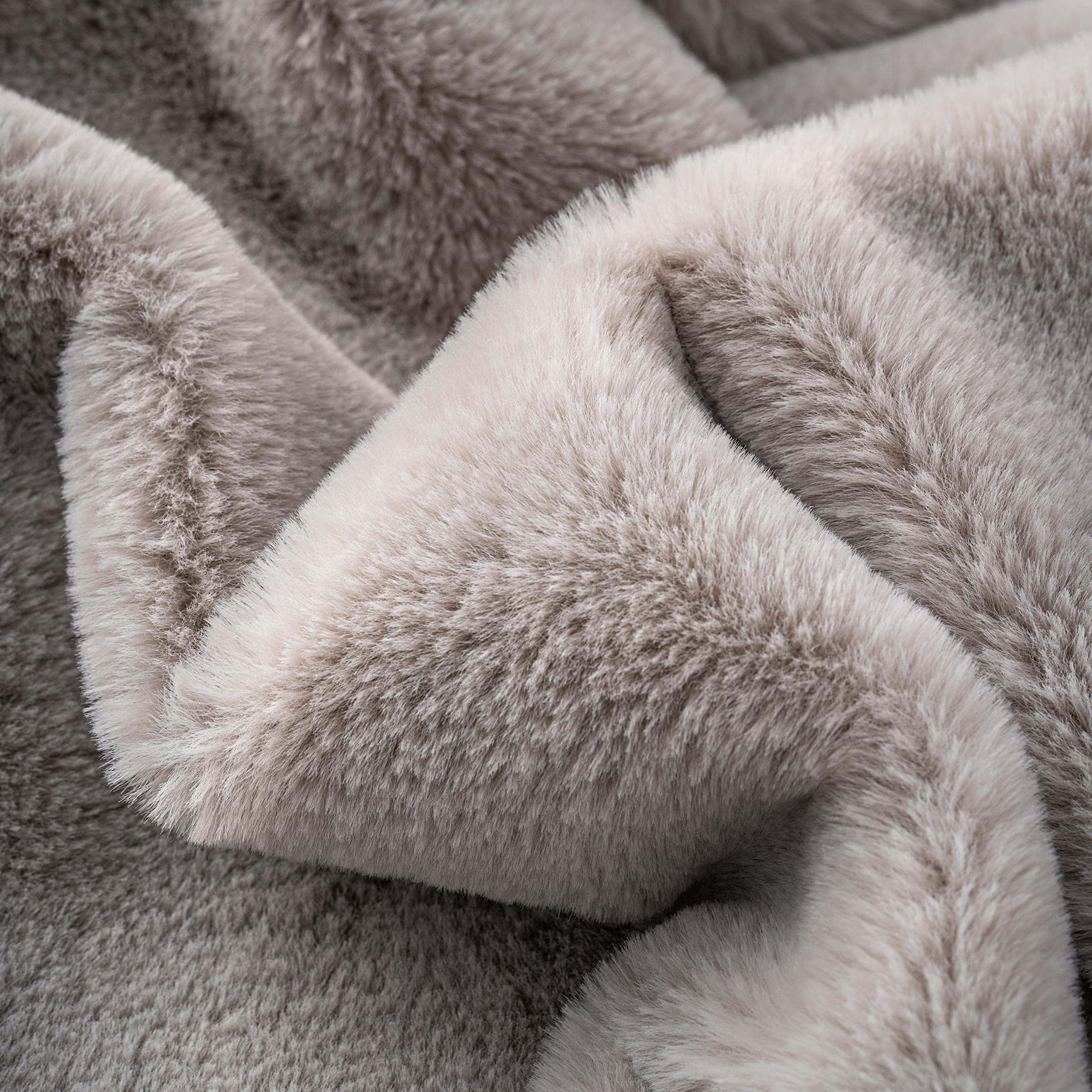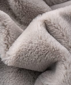 1. Superficie densa de piel sintética de conejo falso y reverso de franela esponjosa. El lado de piel es suave, liso y sedoso contra la piel. El lado de franela es robusto y cálido. Es un gran equilibrio entre estética y utilidad.