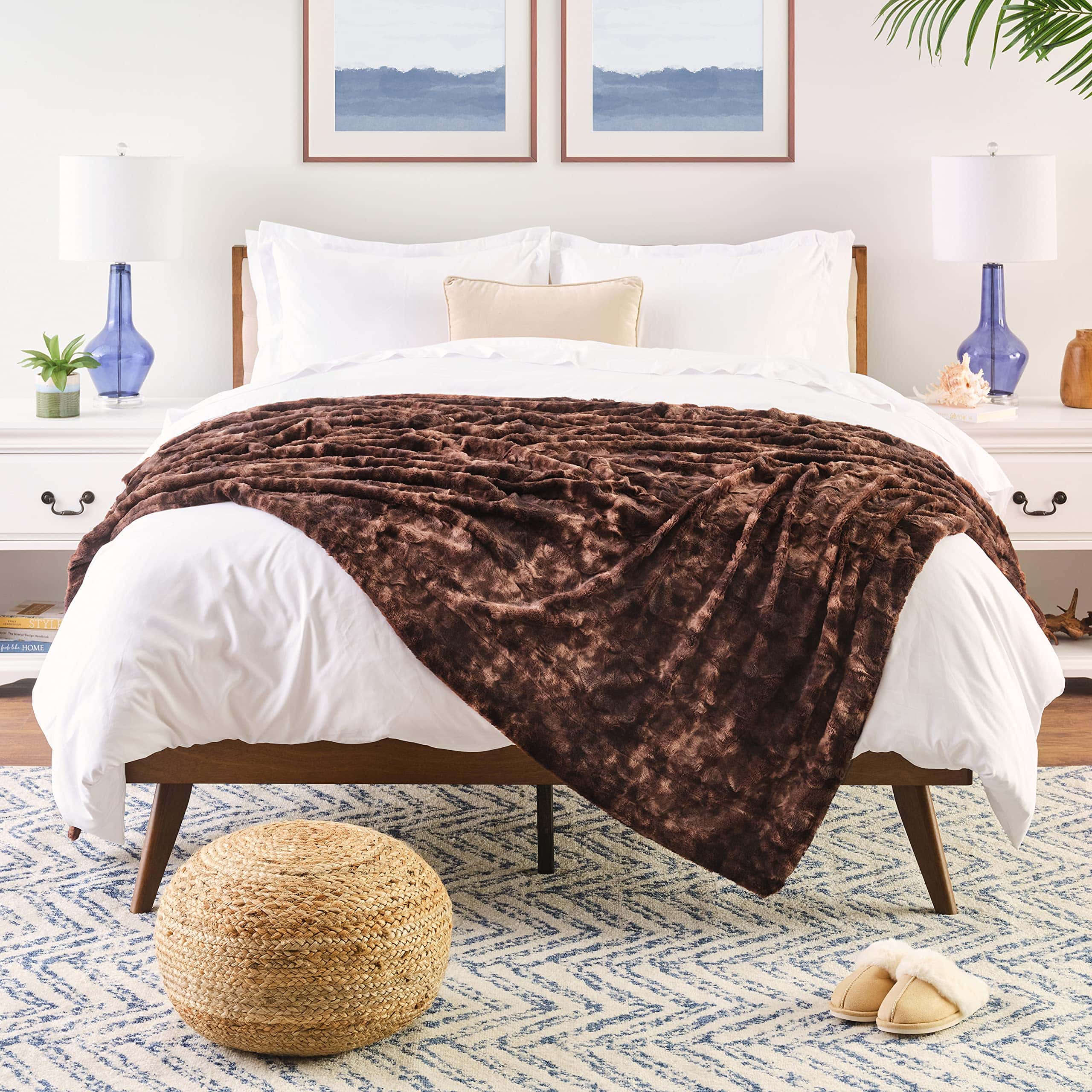 Manta de piel sintética de lobo de doble cara de Chanasya –