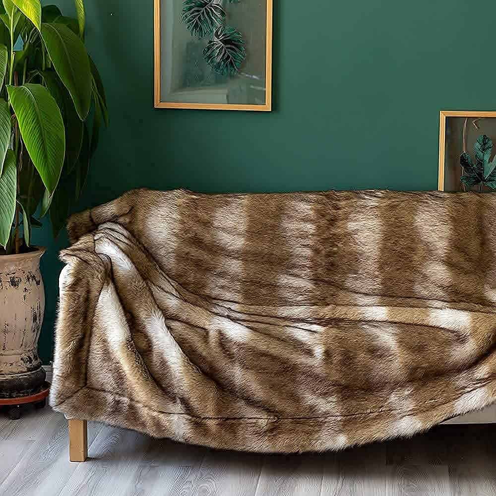 3. LUJOSA DE GRAN TAMAÑO: 60×80 pulgadas de tamaño grande, adecuado para sofá, cama, suelo, etc. Es muy suave y fácil de doblar y llevar. No solo se puede utilizar para decorar el ambiente del hogar interior, sino que también es adecuado para viajes al aire libre como equipo de protección contra el frío.