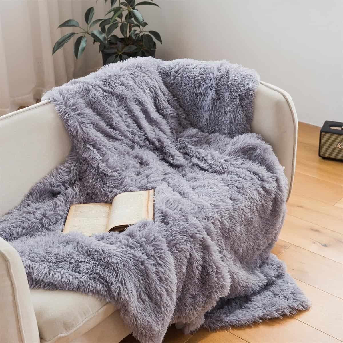 Manta de Piel Sintética Gris, 66″ x 80″ Suave y Esponjosa