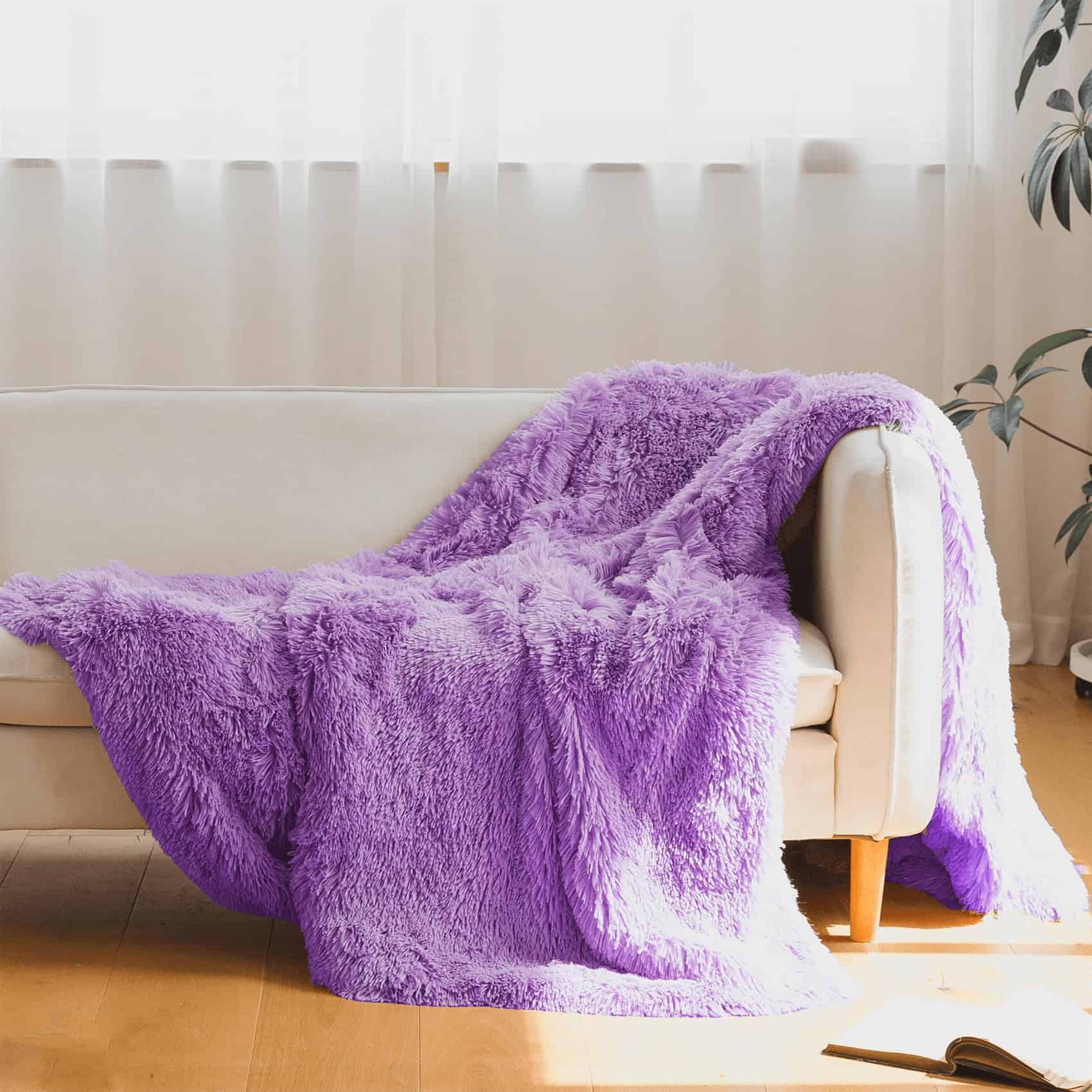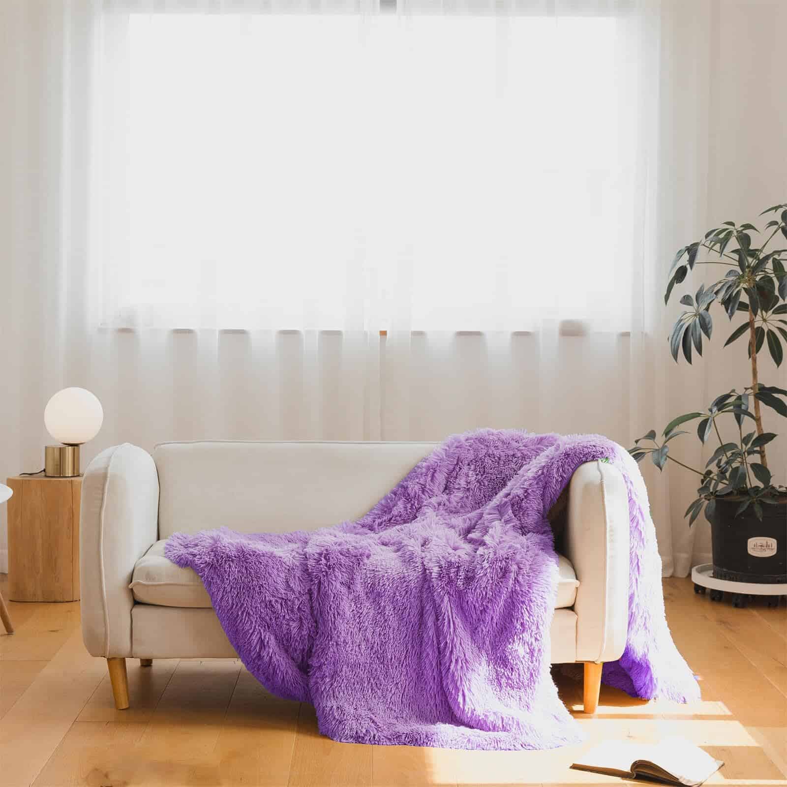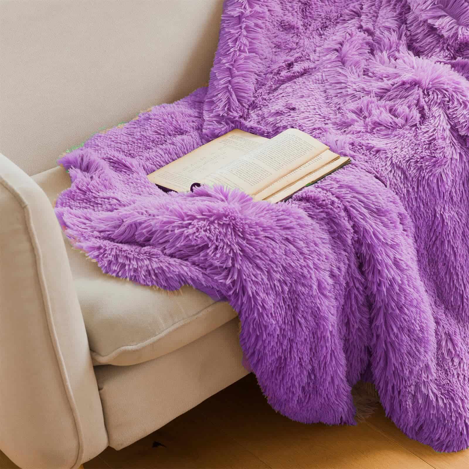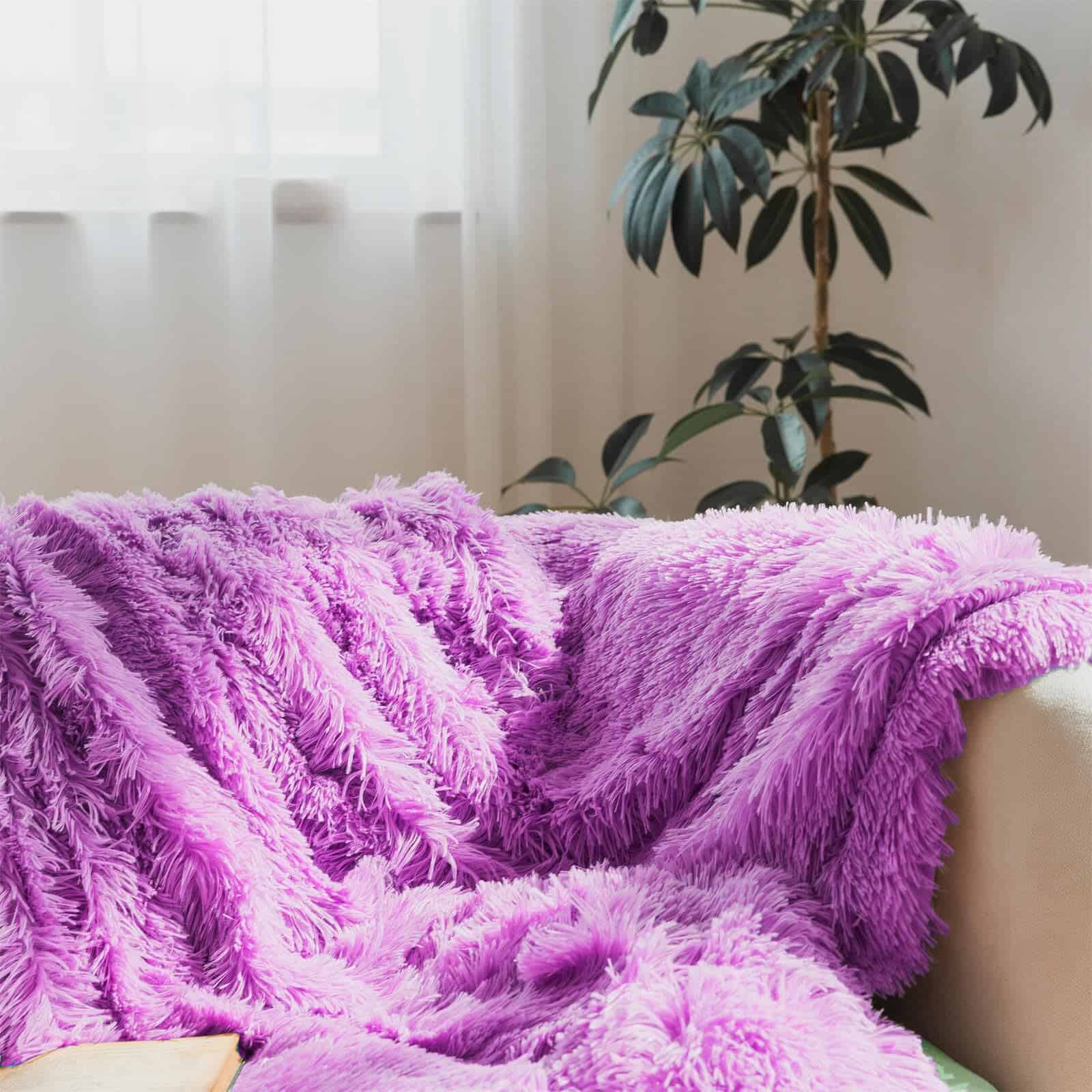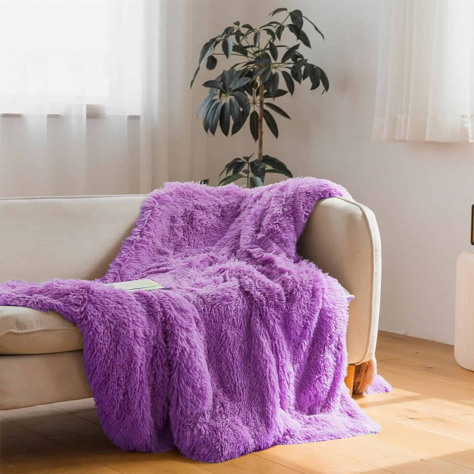 Manta de Piel Sintética Morada, Manta Morada de 66″ x 80″