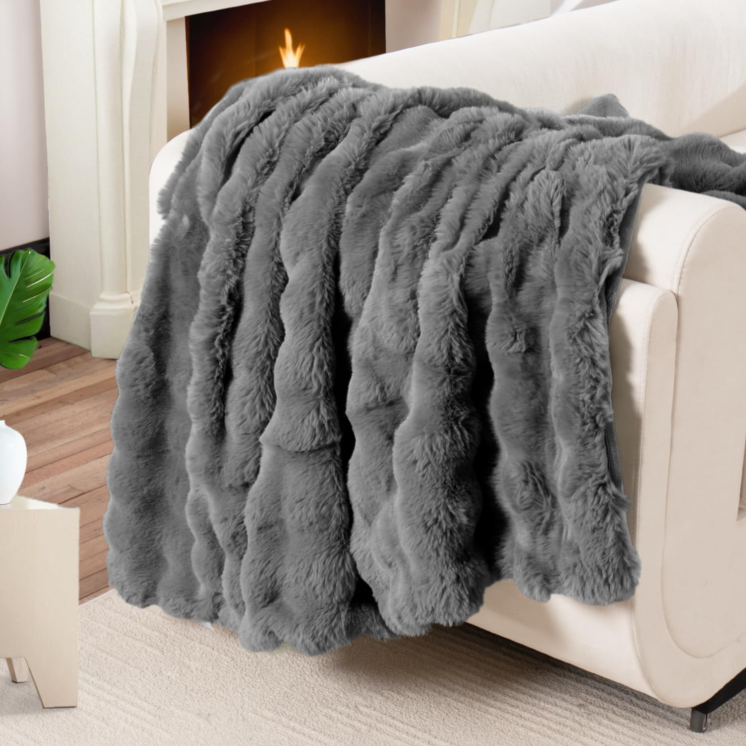 Manta de Piel Sintética para Sofá, Suave y Gruesa Manta de