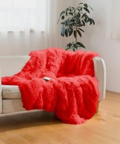 Manta de Piel Sintética Roja, Manta Roja 66″ x 80″