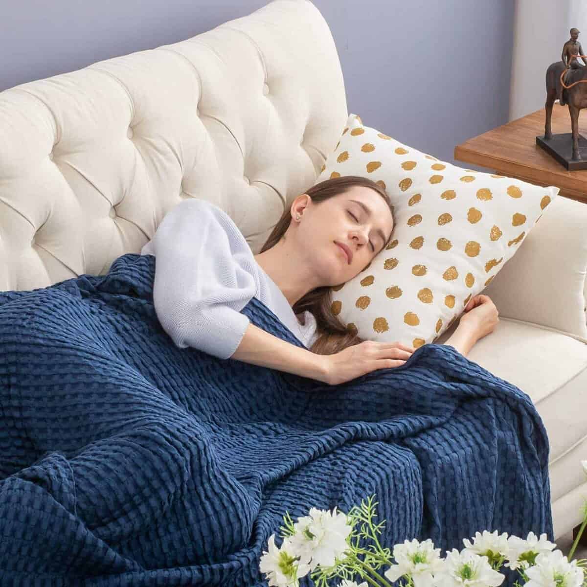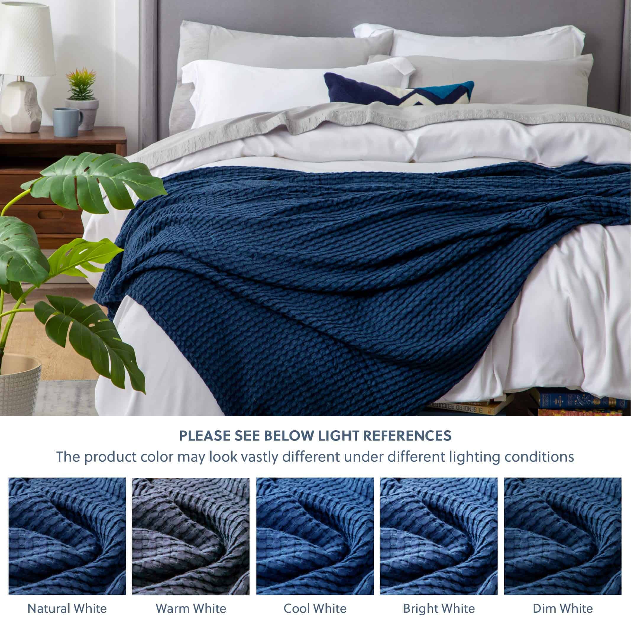 Manta refrescante de piqué de algodón Bedsure Twin XL – Manta ligera y transpirable de rayón derivado de bambú para personas que duermen calientes, lujosos cobertores para cama, sofá y sofá, Azul Marino, 66×90 pulgadas. Increíblemente suave y reguladora de la temperatura con un aspecto naturalmente desgastado, esta manta ligera ofrece el equilibrio perfecto entre peso y calidez para la acogedora comodidad durante todo el año. Hecha de 50% algodón y 50% rayón derivado de bambú, esta manta refrescante absorbe naturalmente la humedad y es excepcionalmente transpirable, proporcionando un sueño cómodo y seco para personas que duermen calientes. El diseño clásico de piqué de la manta y su textura tridimensional añaden sofisticación… (truncated due to character limit)