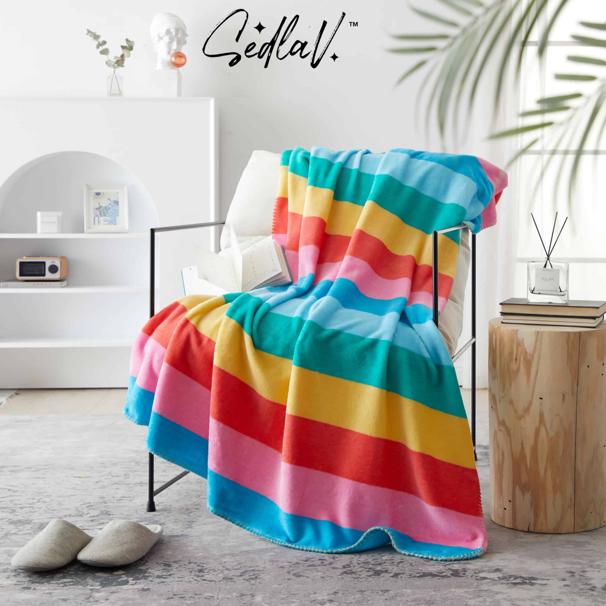Manta de Plush SEDLAV Rainbow Dreams: Acogedora en Rayas