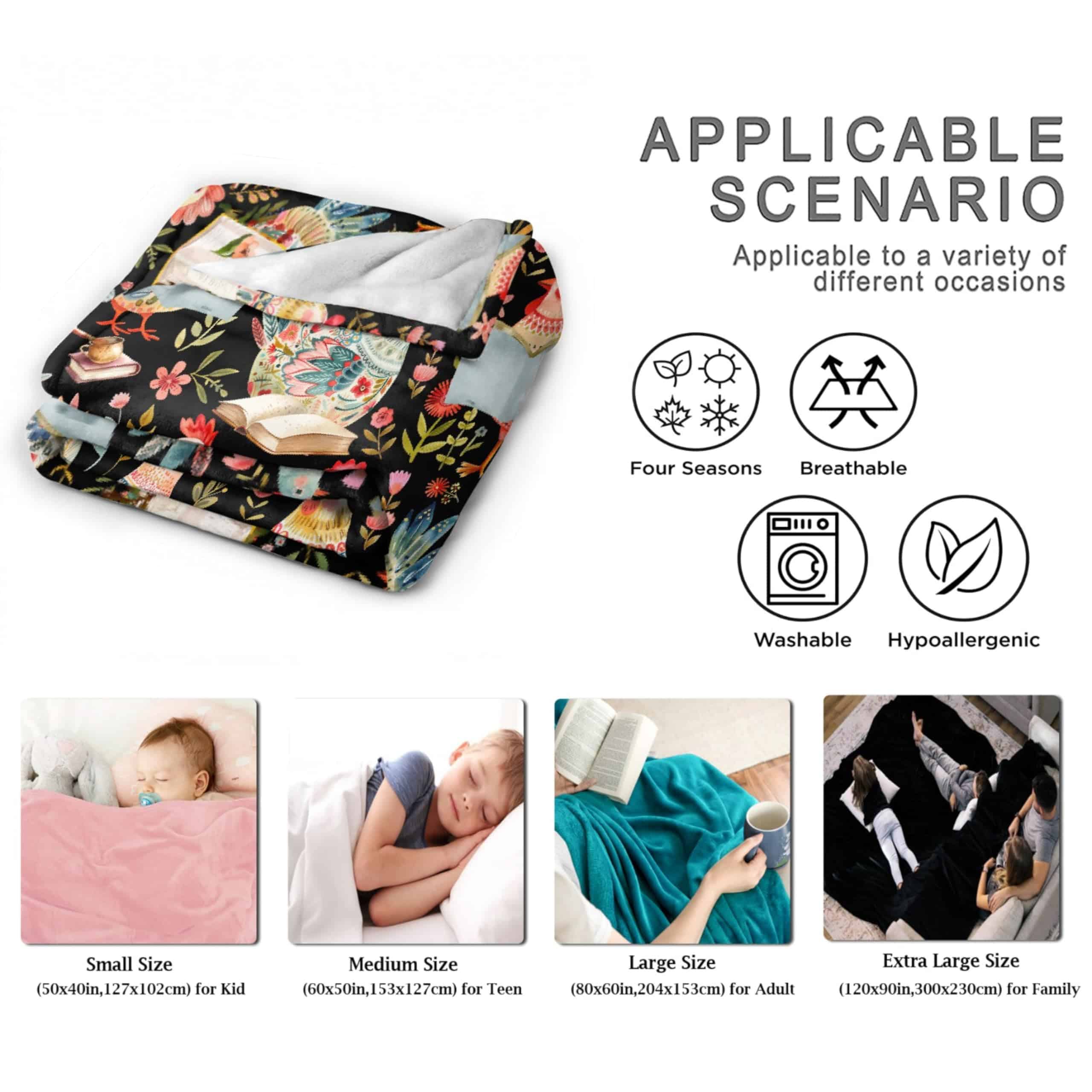 1. Material & Diseño Estas mantas de franela son de fibra de poliéster de alta calidad. Adopta las técnicas de corte precisas y la costura exquisita. Vienen en colores llamativos para cada cambio de temporada, incluyendo colores fríos y cálidos, nuestra manta la convierte en la adición perfecta a tu habitación. 2. Tamaño & Objetos Aplicables 30 40″ XS, adecuado para niño pequeño, mascotas pequeñas o para cubrir las piernas; 40 50″ S, adecuado para niñas y niños pequeños; 50 60″ M, adecuado para adolescentes y estudiantes; 60 80″ L, adecuado para adulto y niños gemelos; 90 120″ XL, adecuado para parejas y familias. 3. Escenas & Funciones La manta es tan suave y cálida que te hará sentir cómodo cuando estés acostado en el sofá, sofá o cama, te cubrirá con el toque final perfecto. También es genial para tus mascotas peludas. La manta es ligera y perfecta para acampar al aire libre, picnics y mochileros. 4. Regalos & Obsequios Debido al material suave y al diseño elegante, es definitivamente una excelente opción de regalo para familiares y amigos en cumpleaños, inauguración de la casa, aniversario, fiesta, Día de San Valentín, Acción de Gracias, Navidad, etc. Este es un regalo cálido, la persona que lo reciba estará feliz. 5. Fácil de Limpiar: Lavar a máquina o a mano. Lavar a máquina en ciclo suave con agua fría, secar a temperatura muy baja. La limpieza de las mantas de envoltura para adultos es muy simple y conveniente. No te llevará mucho tiempo. Tienes tiempo para parar y hacer lo que te gusta. Tu satisfacción es nuestra mayor búsqueda