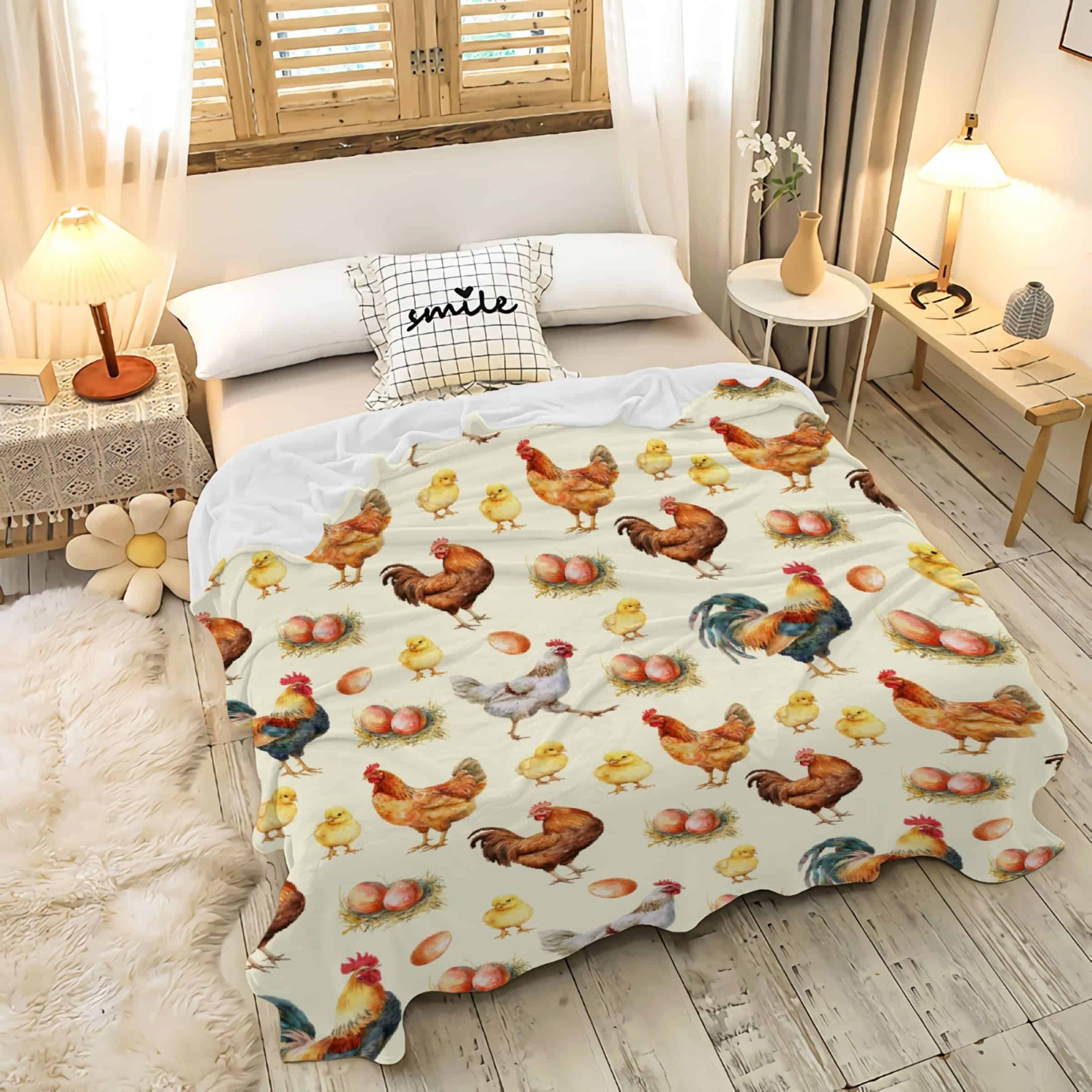 Manta de Pollitos y Huevos para Amantes de las Gallinas