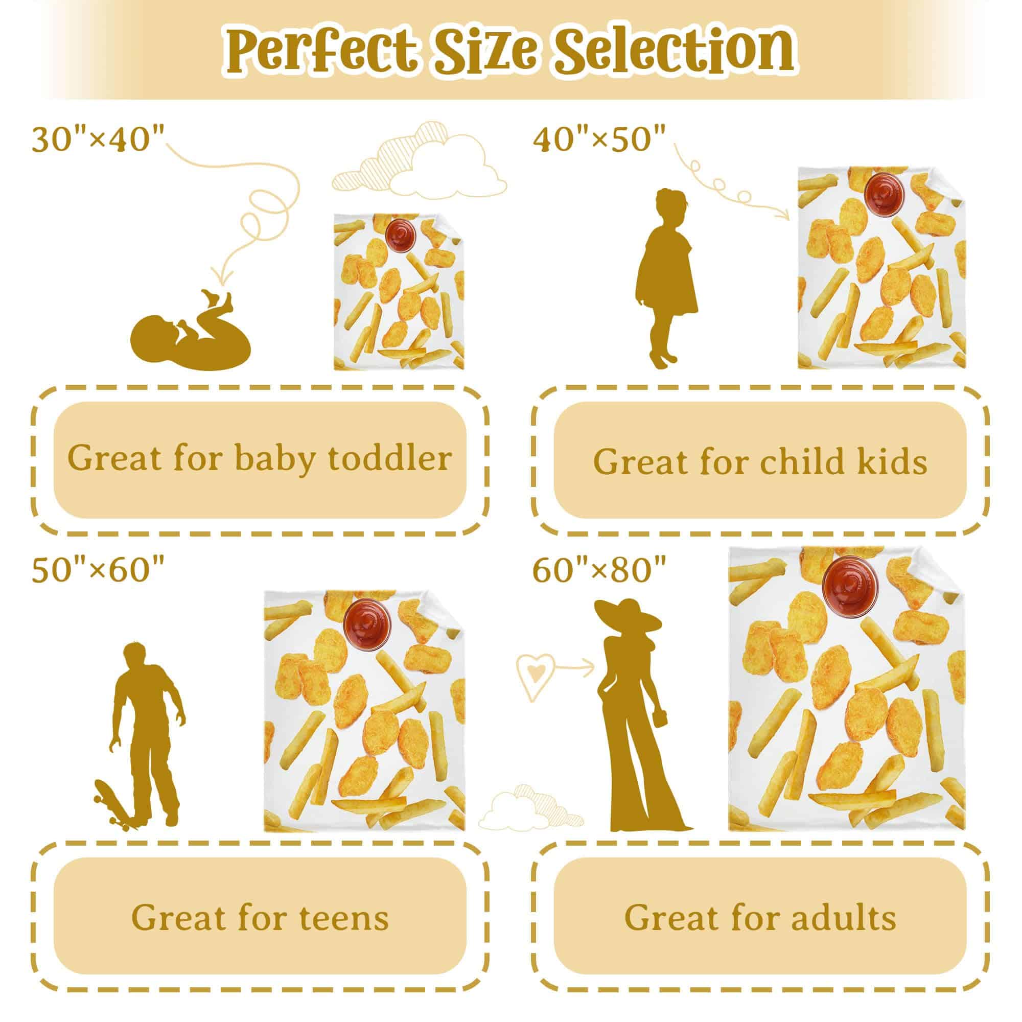 1. Cinco tamaños: 40x30in Extra Pequeño, adecuado para mascotas, perros, gatos, animales lindos; 50x40in Pequeño, adecuado para niños, viajes, manta de avión, tus piernas, perros, gatos. 60x50in Mediano, adecuado para adolescentes, personas solteras, sentarse en el sofá, cama individual, coche; 80x60in Grande, adecuado para cama tamaño doble, adulto. 120x90in XXL, adecuado para toda la familia.