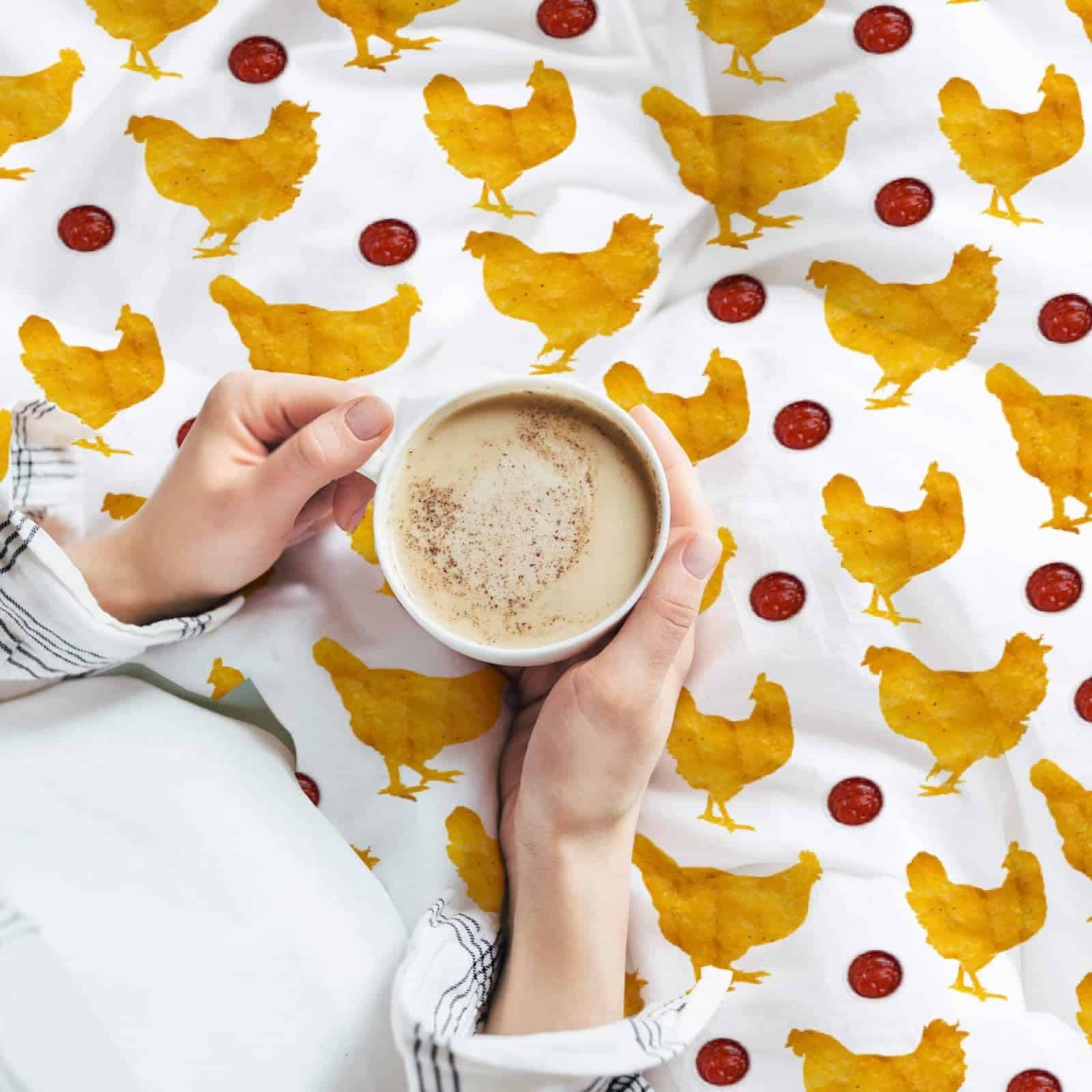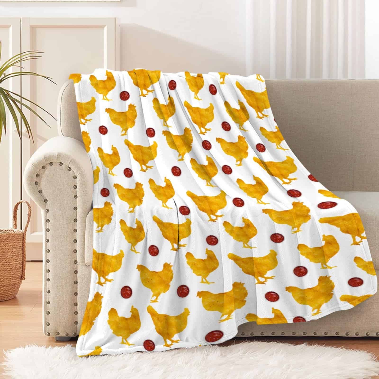 3. CÓMODO Y DURADERO Esta manta está hecha de microfibra ultra suave, transpirable, lavable a máquina y nunca se desvanece. Suficientemente duradero para proporcionarte un uso a largo plazo. Ya sea que quieras usarlo en verano o lo suficientemente cálido para usarlo en invierno, la manta de pollo nuggets proporcionará un calor sustancial y una excelente experiencia.