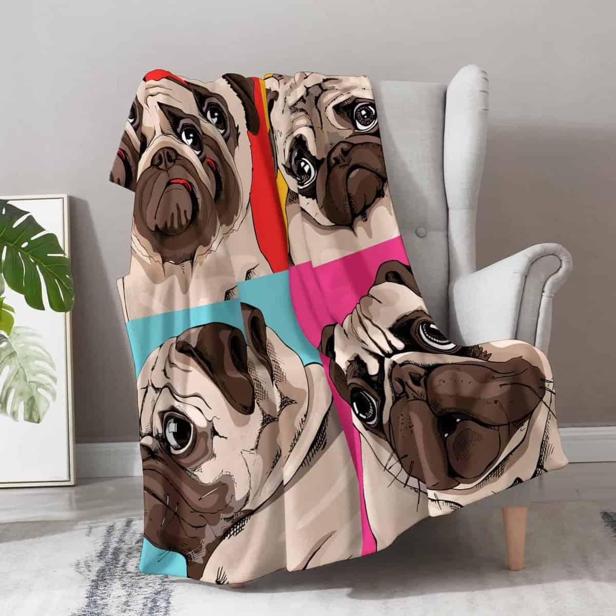 Manta de Pug para Niños y Adultos – Mantas Cálidas y Suaves