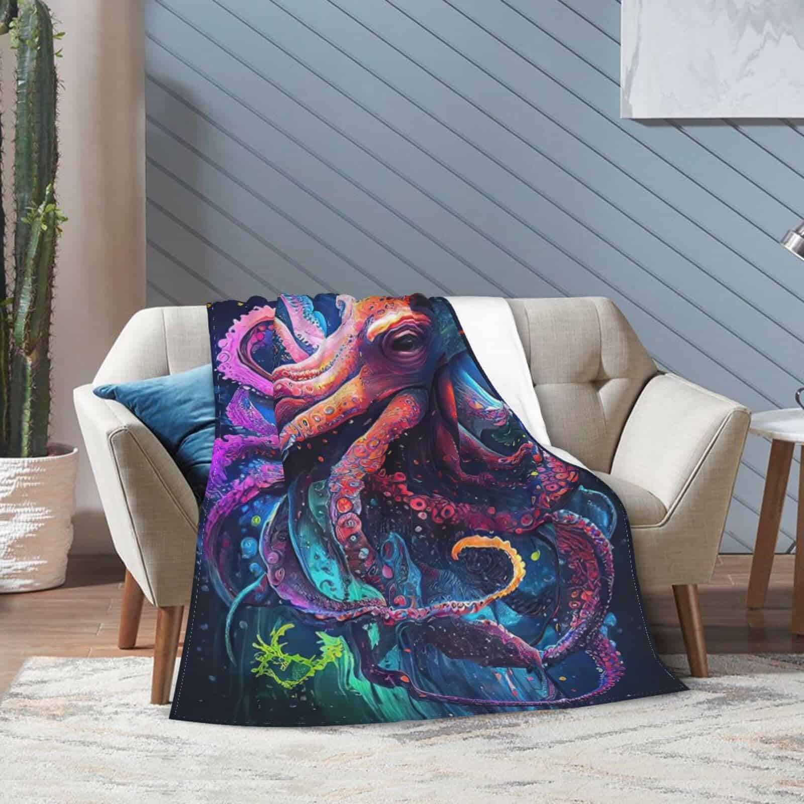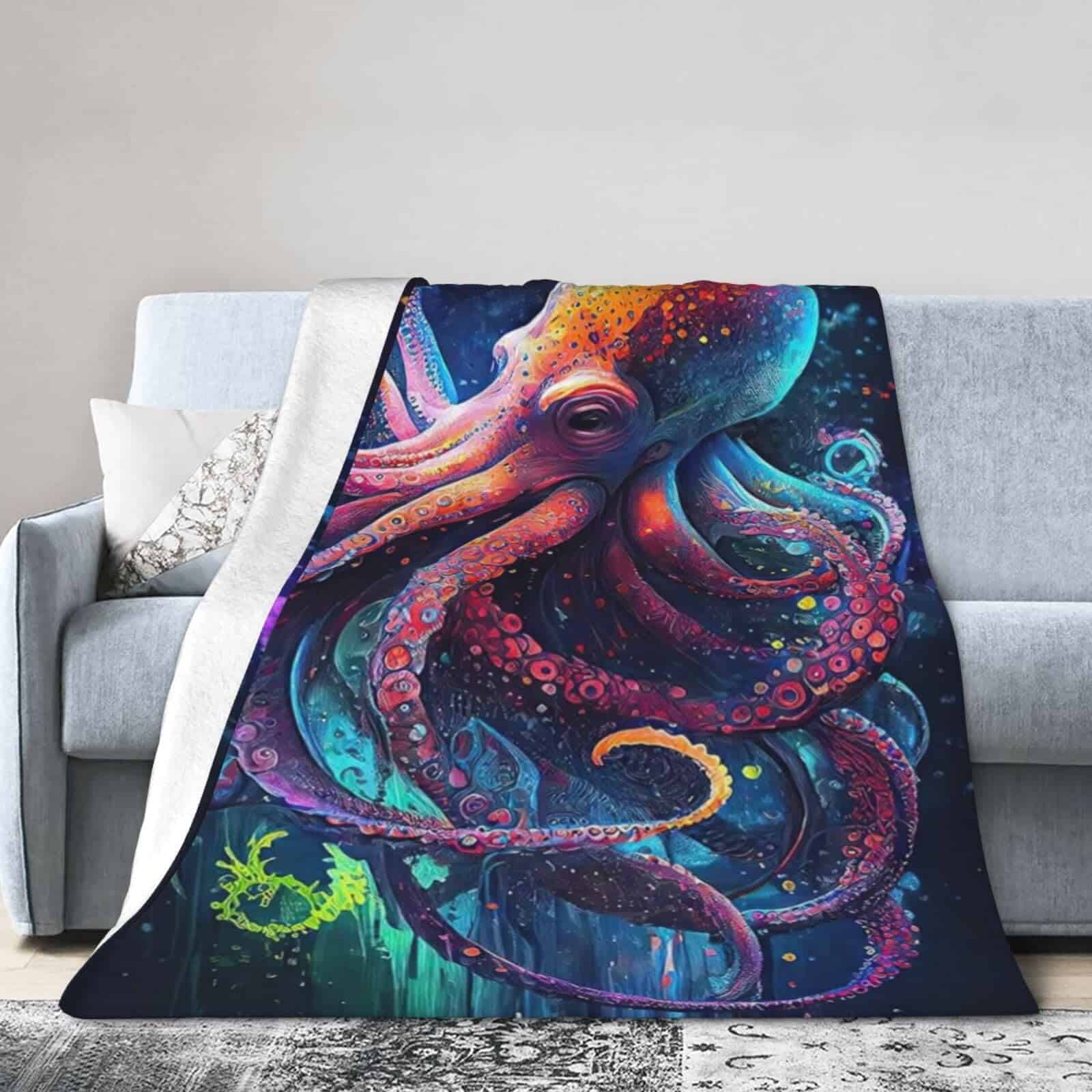 Manta de Pulpo para Sofá Cama y Oficina, Acogedora Manta de