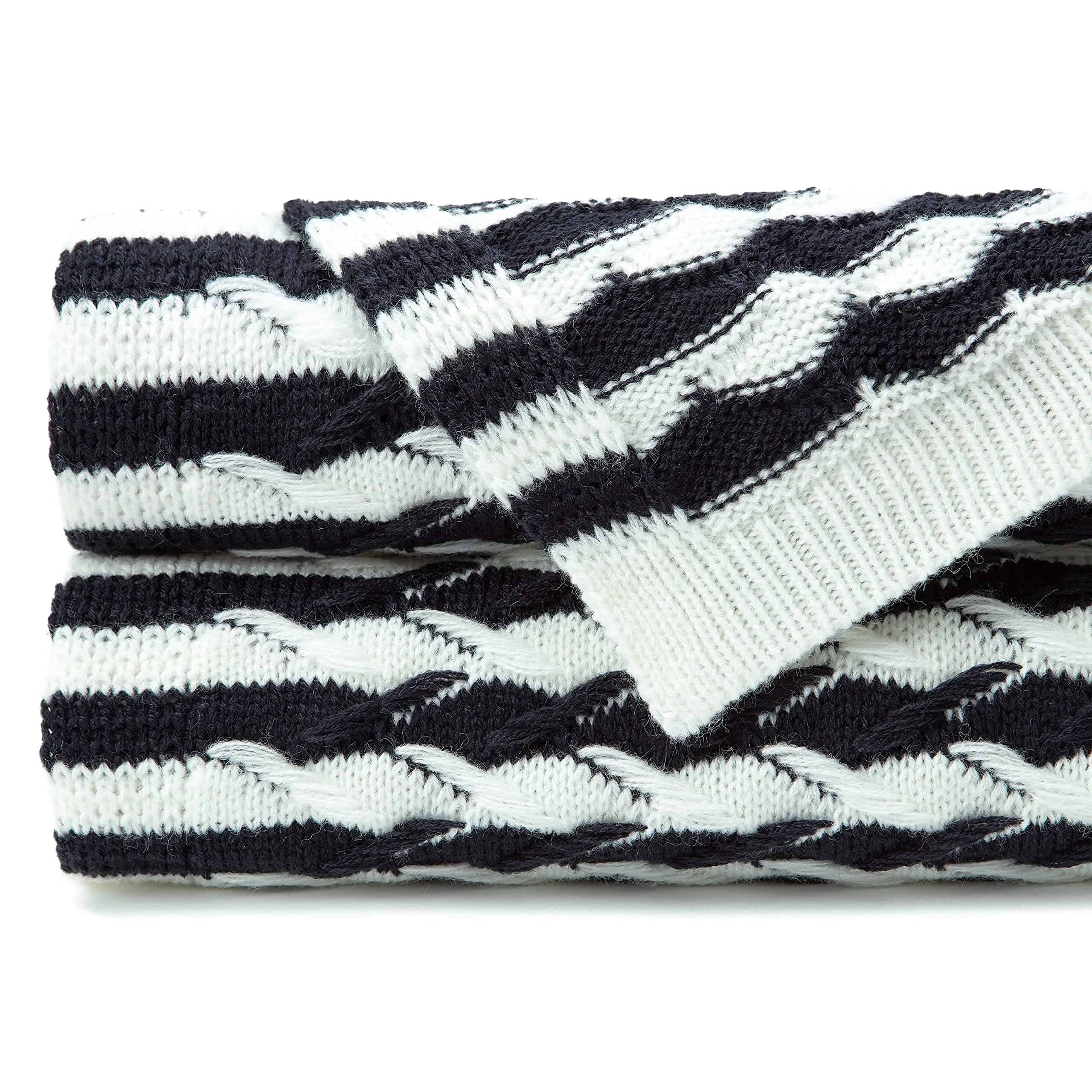 Manta de Punto a Rayas en Blanco y Negro Chanasya Premium –