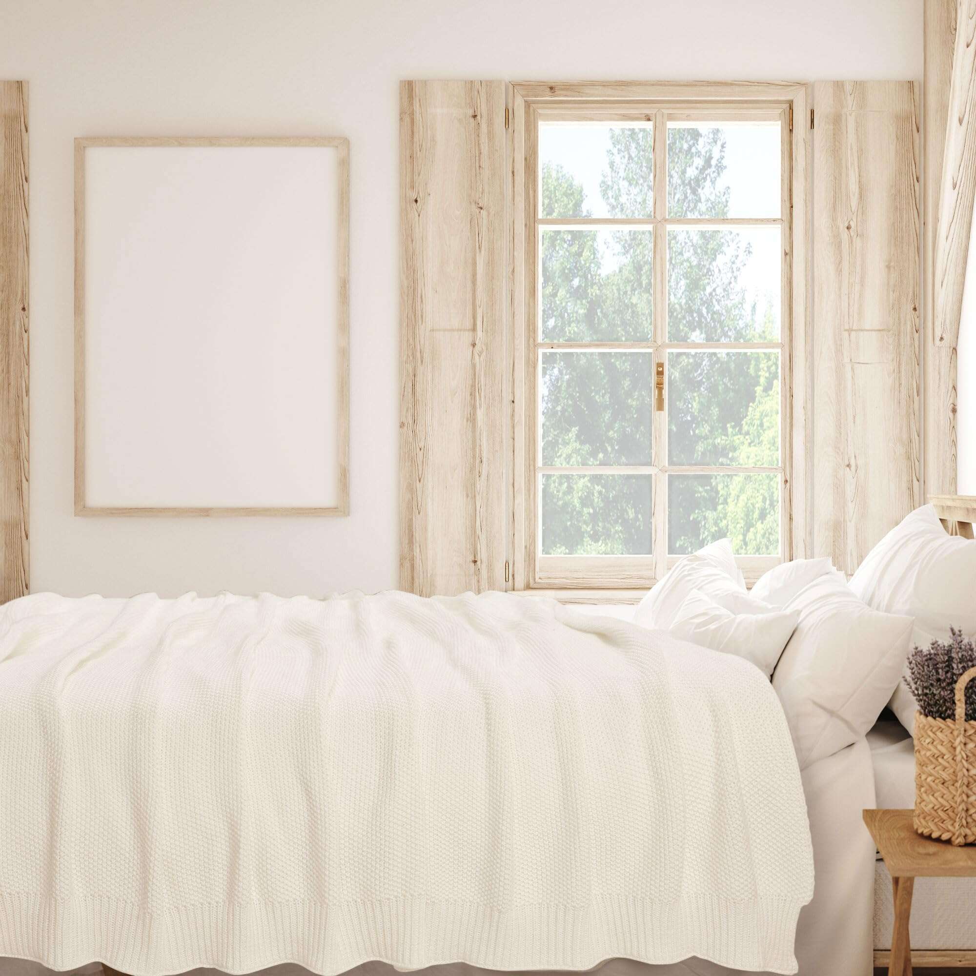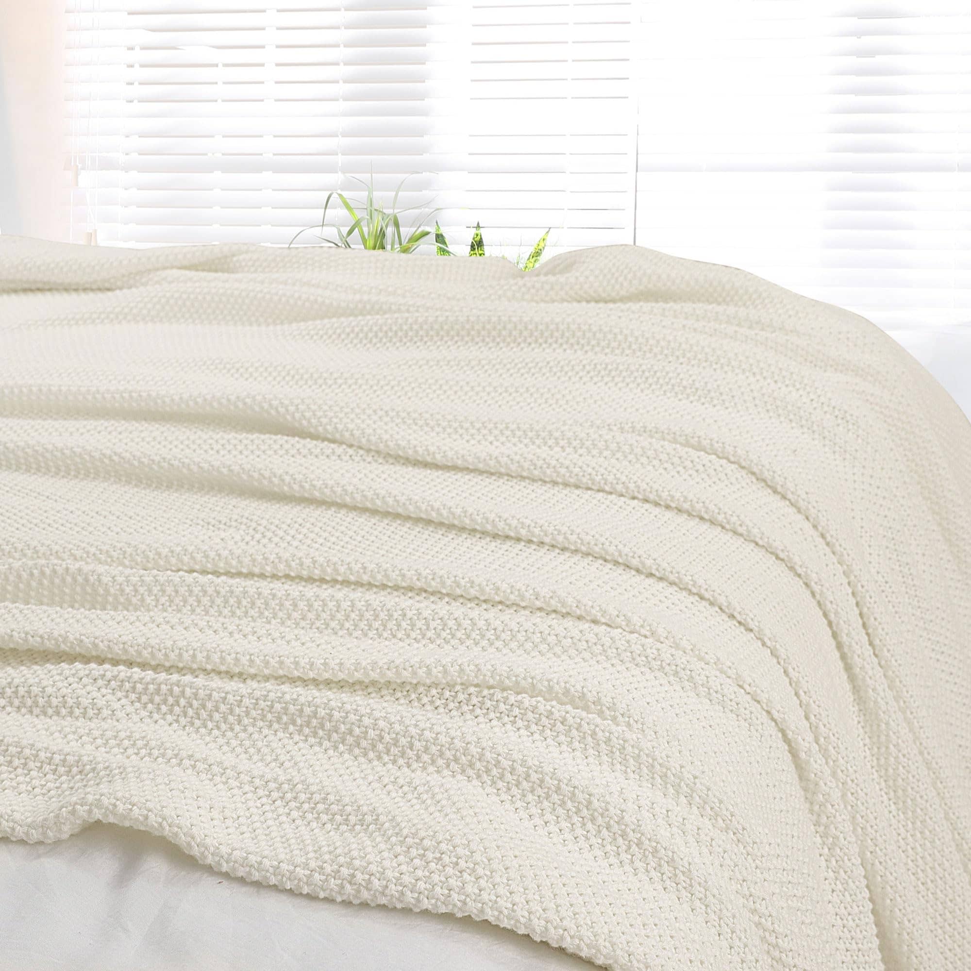 Manta de Punto de Algodón 100%, Tamaño Completo – Beige 70″