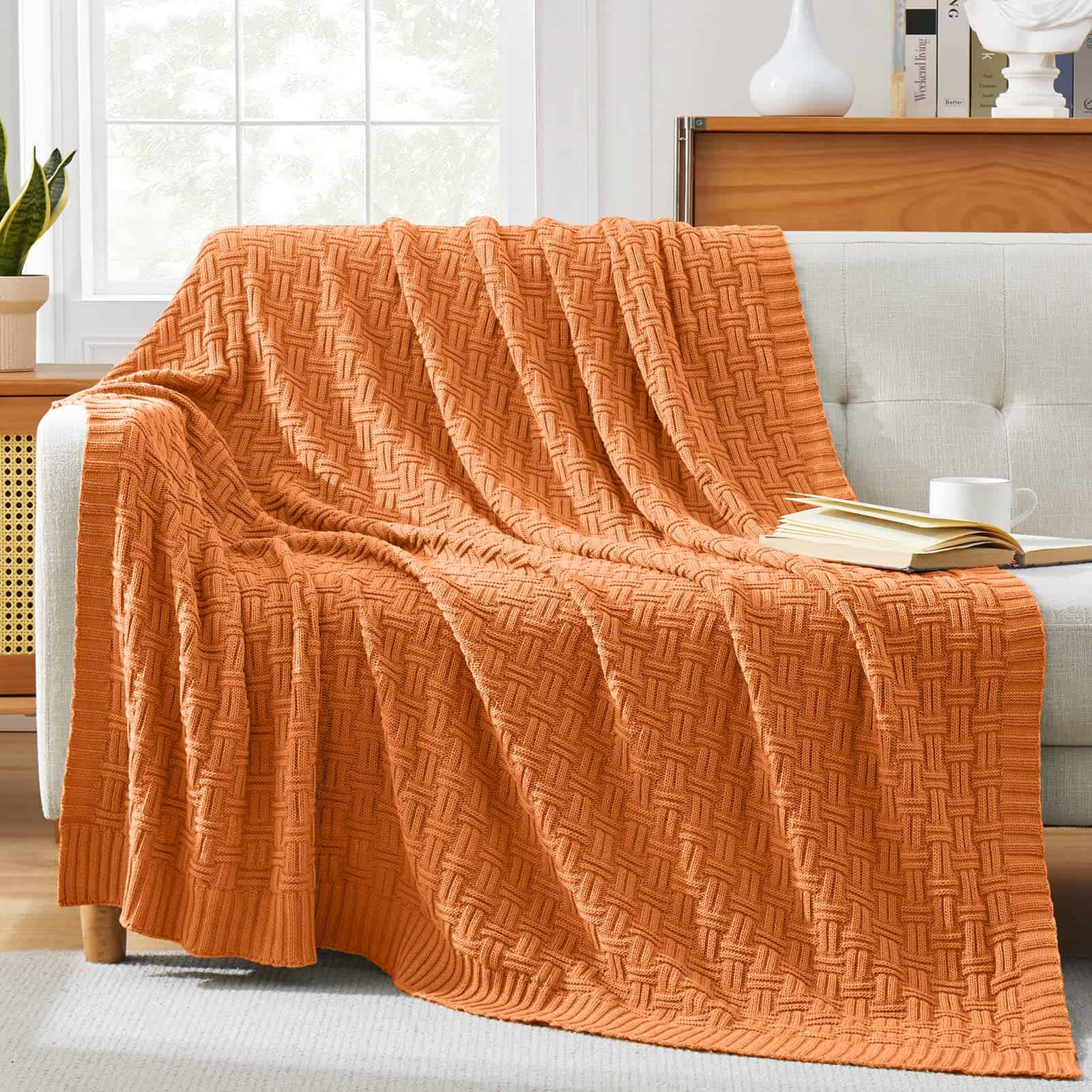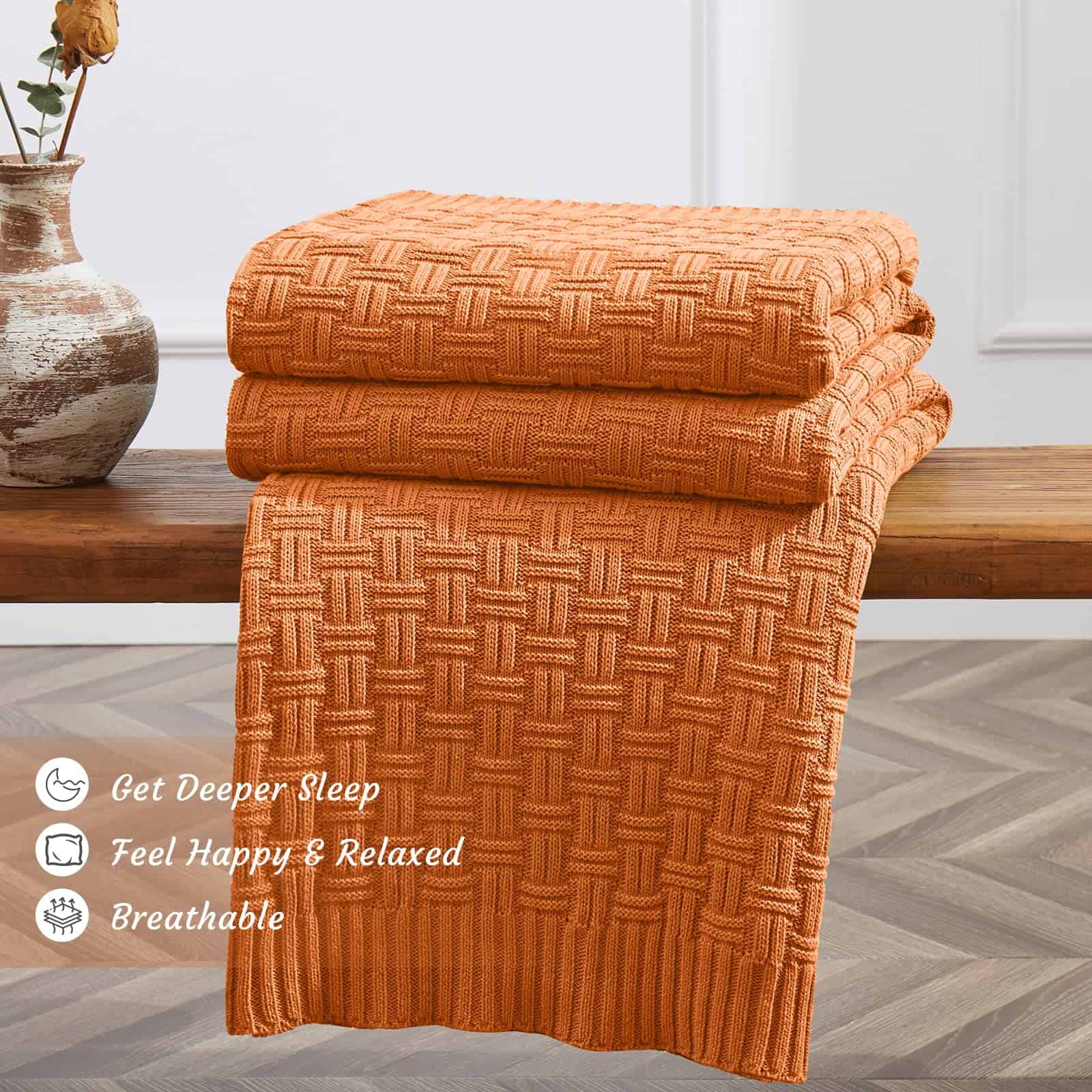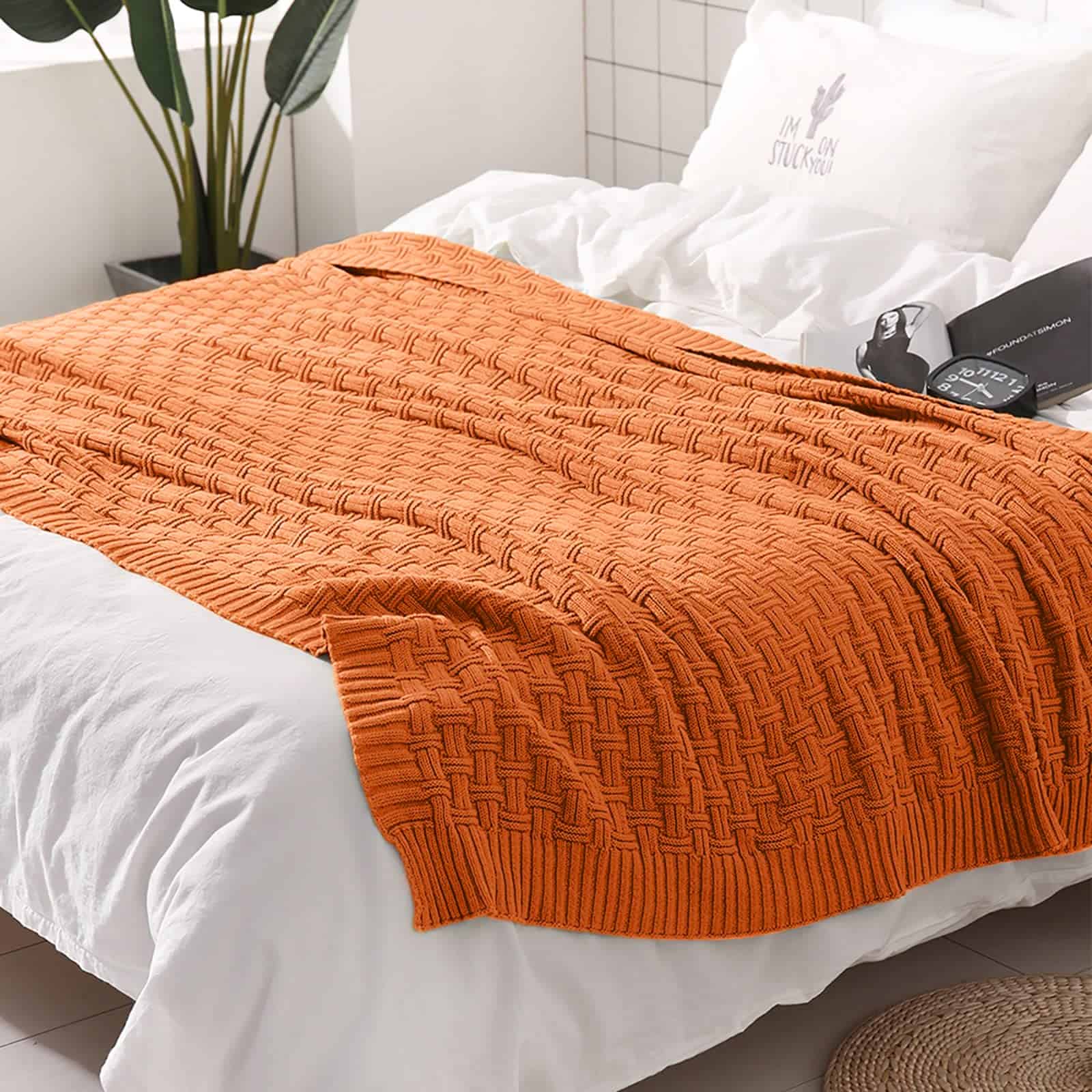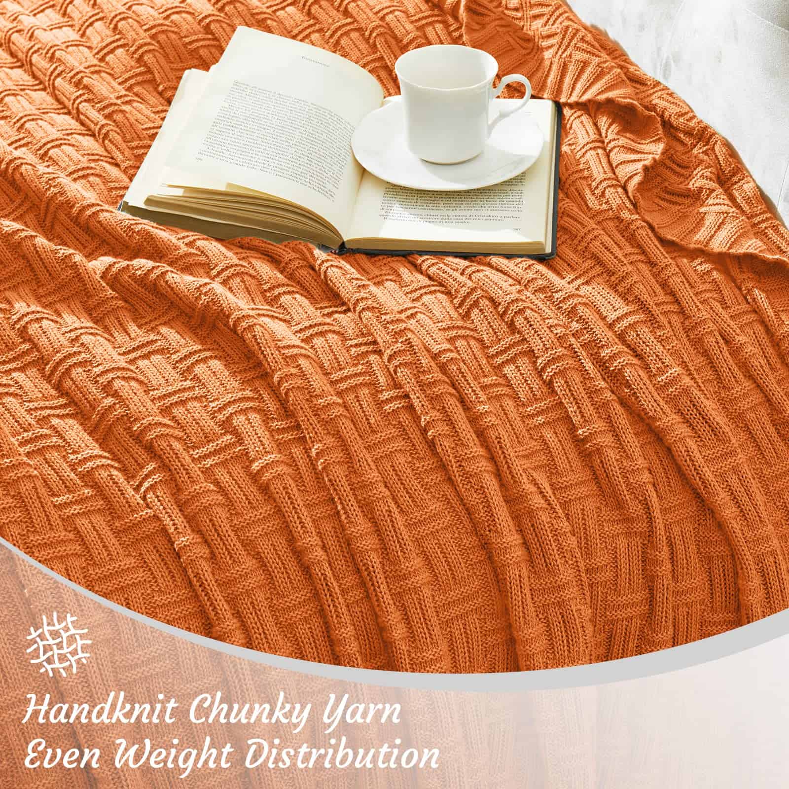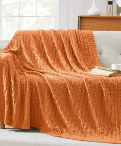 Manta de Punto de Algodón 100% TREELY para -Naranja
