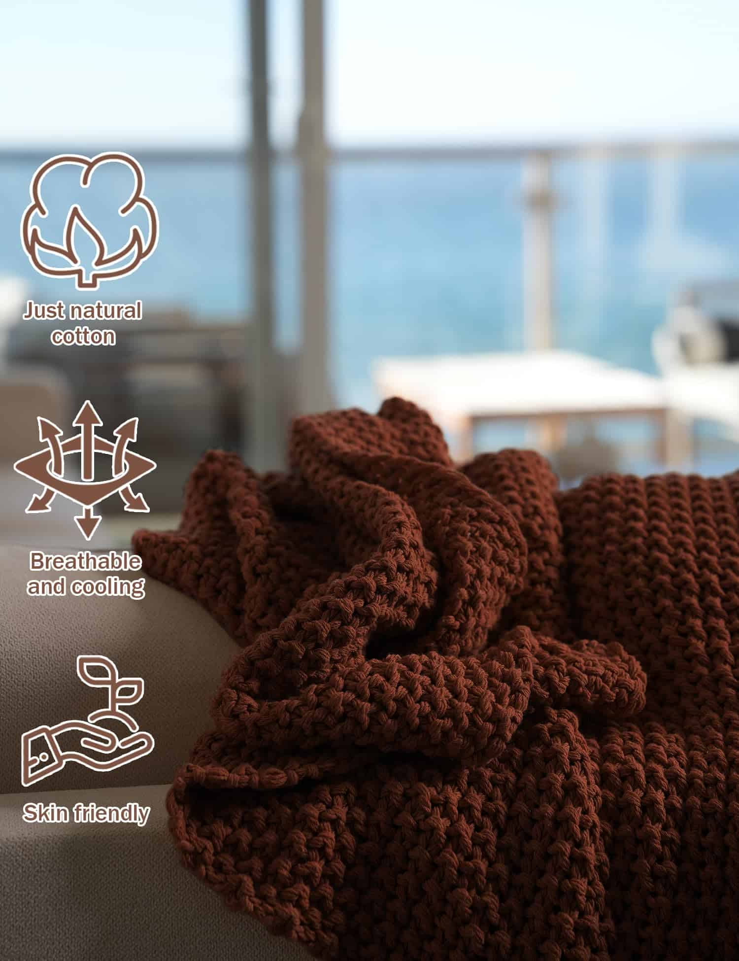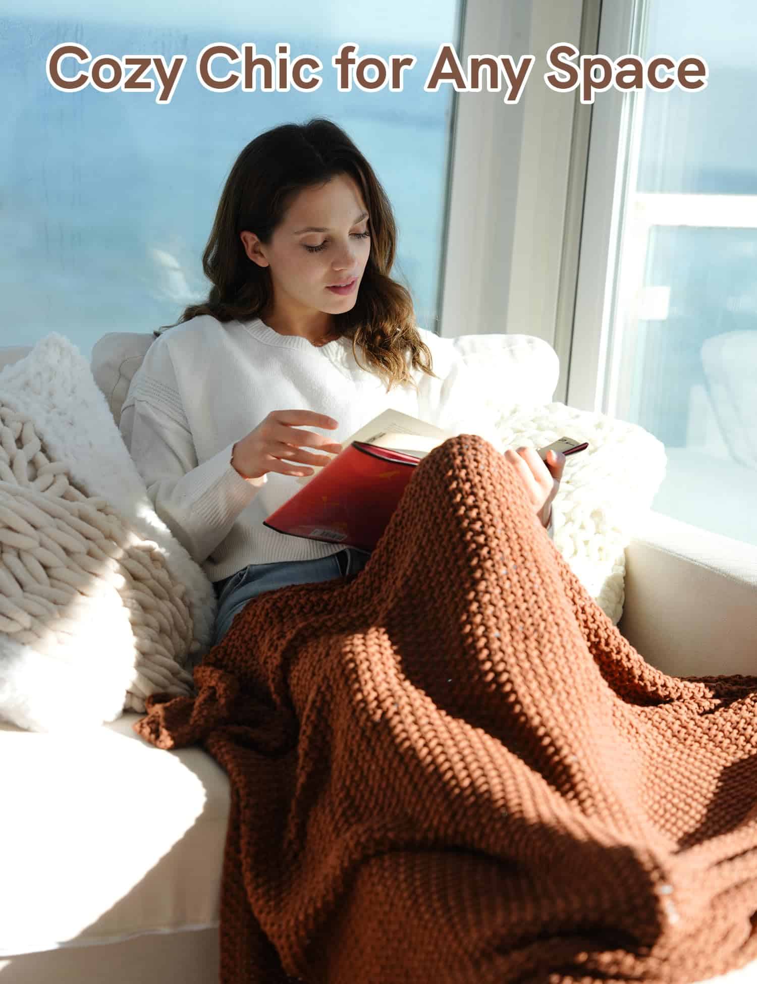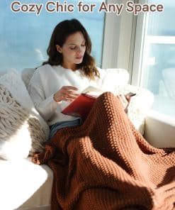 2. Placer Estético a la Moda y con Estilo. Ligera. Acurrúcate con ella en el sofá, coloca esta manta de punto grueso bajo tu edredón o colcha para mayor calidez, o colócala sobre tu cama para añadir un toque de textura.