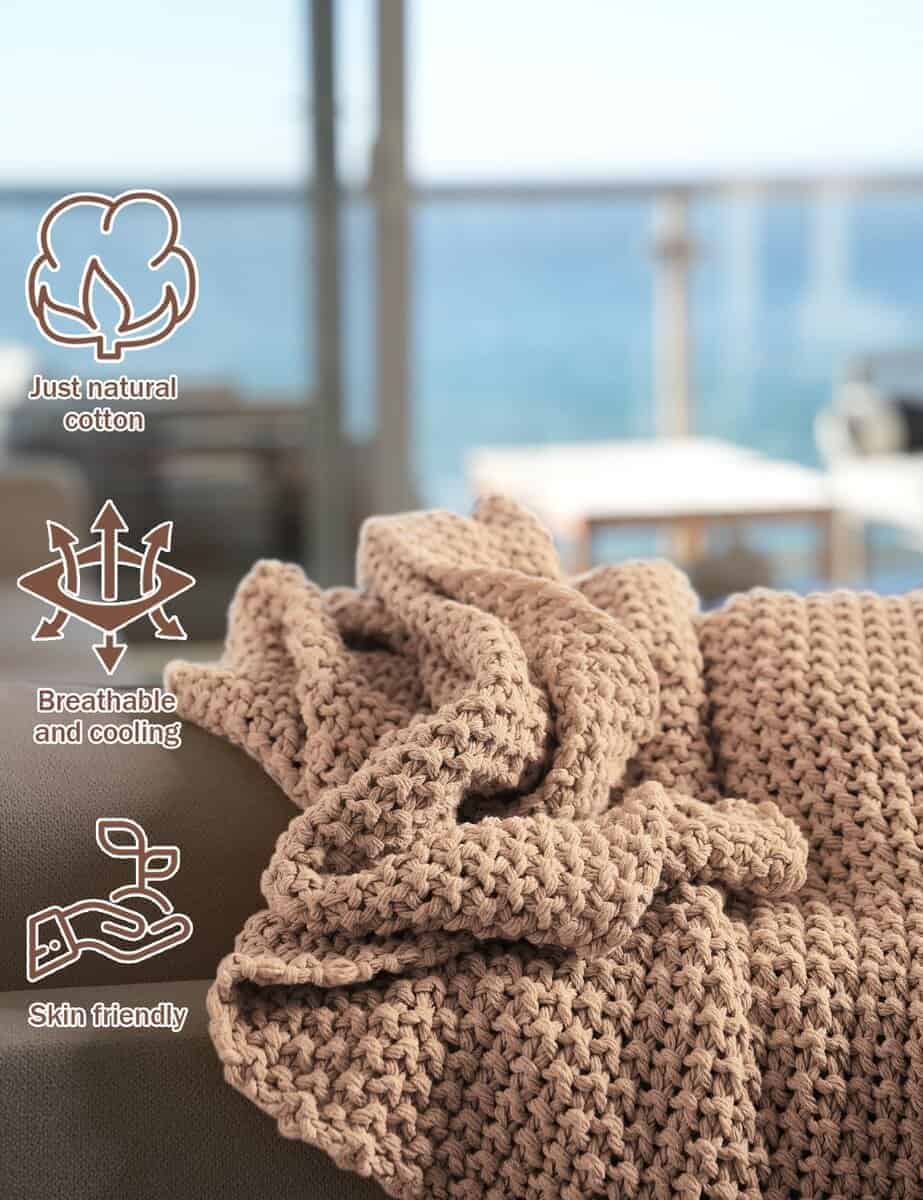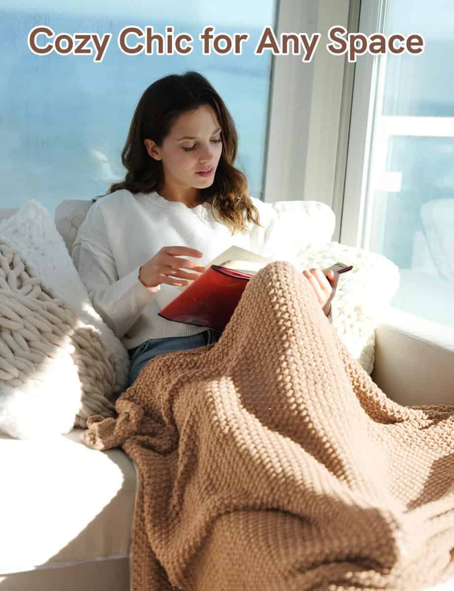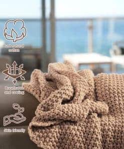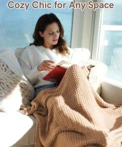 2. Placer Estético: Moderna y elegante. Ligera. Acurrúcate con ella en el sofá, coloca esta manta de punto grueso bajo tu edredón o colcha para mayor calidez, o llévala a tu cama para un toque de textura.