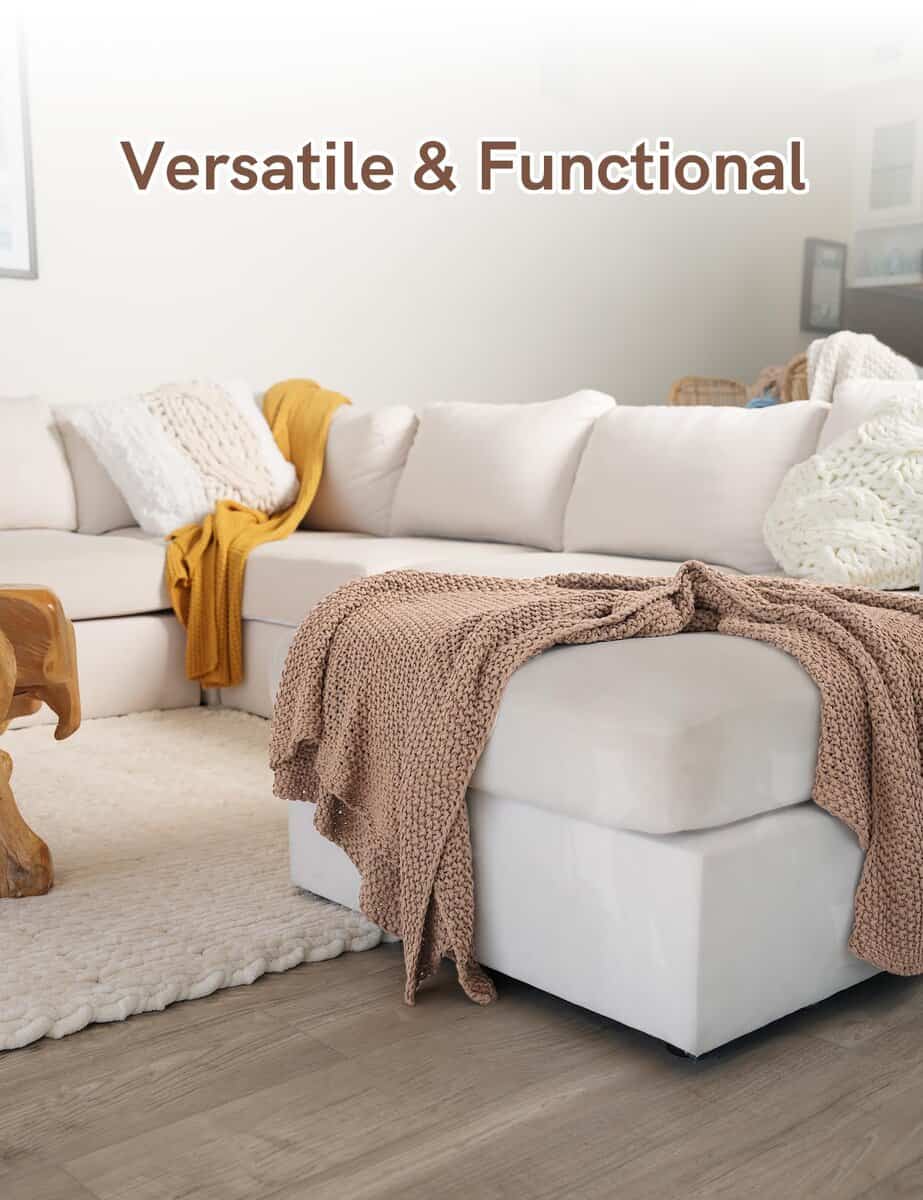 4. Tamaño: Disponible en tres tamaños: 50×60 pulgadas para sofás y sillones, 60×80 pulgadas para camas individuales/matrimoniales y 80×87 pulgadas para camas king/california king. El tejido suelto de la manta permite que se estire, haciéndola aún más larga.