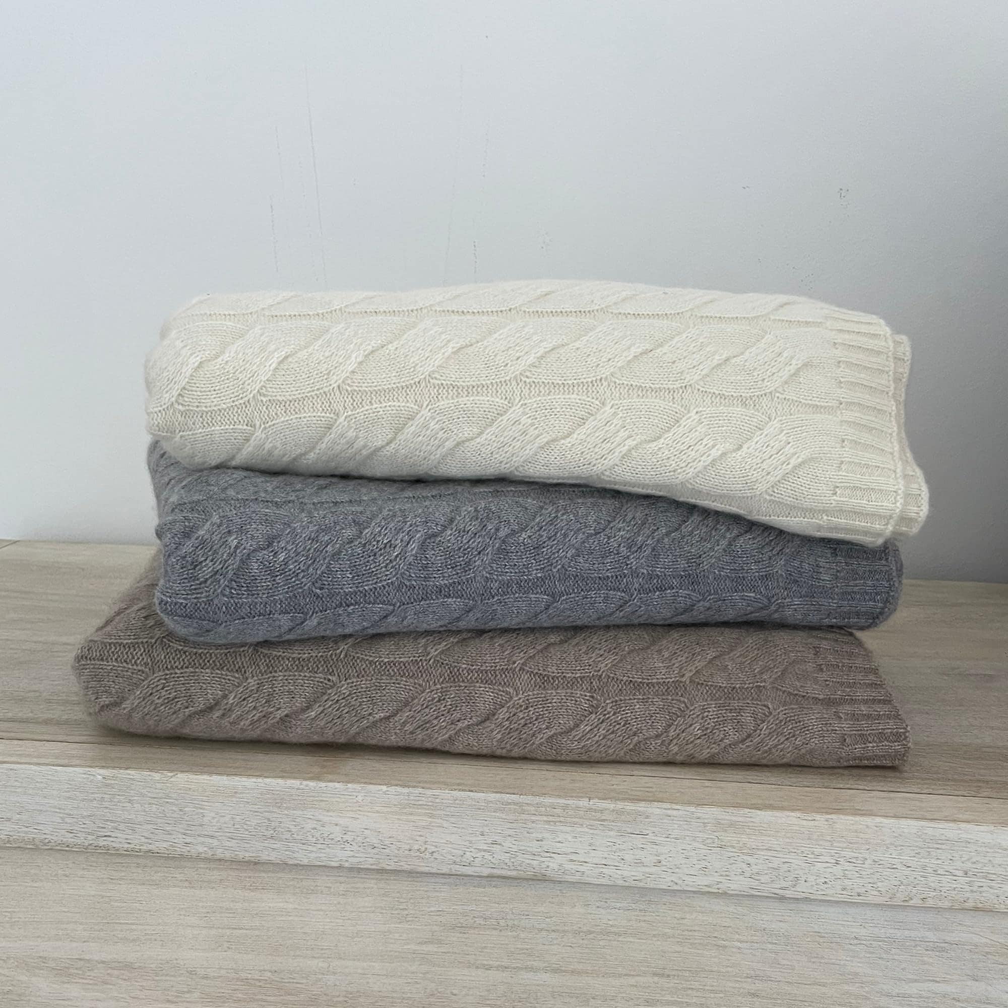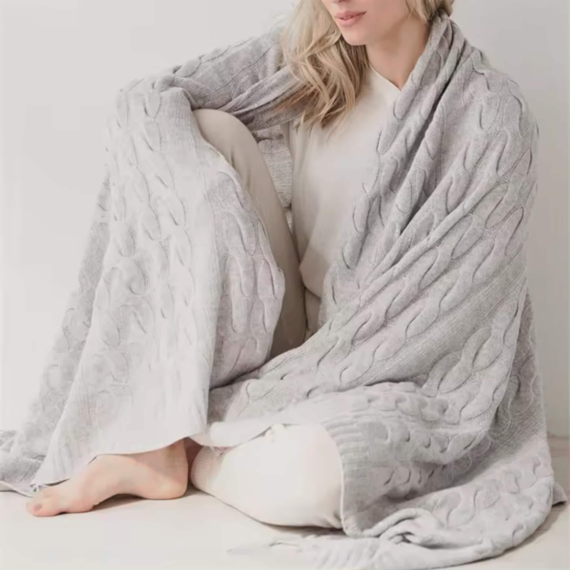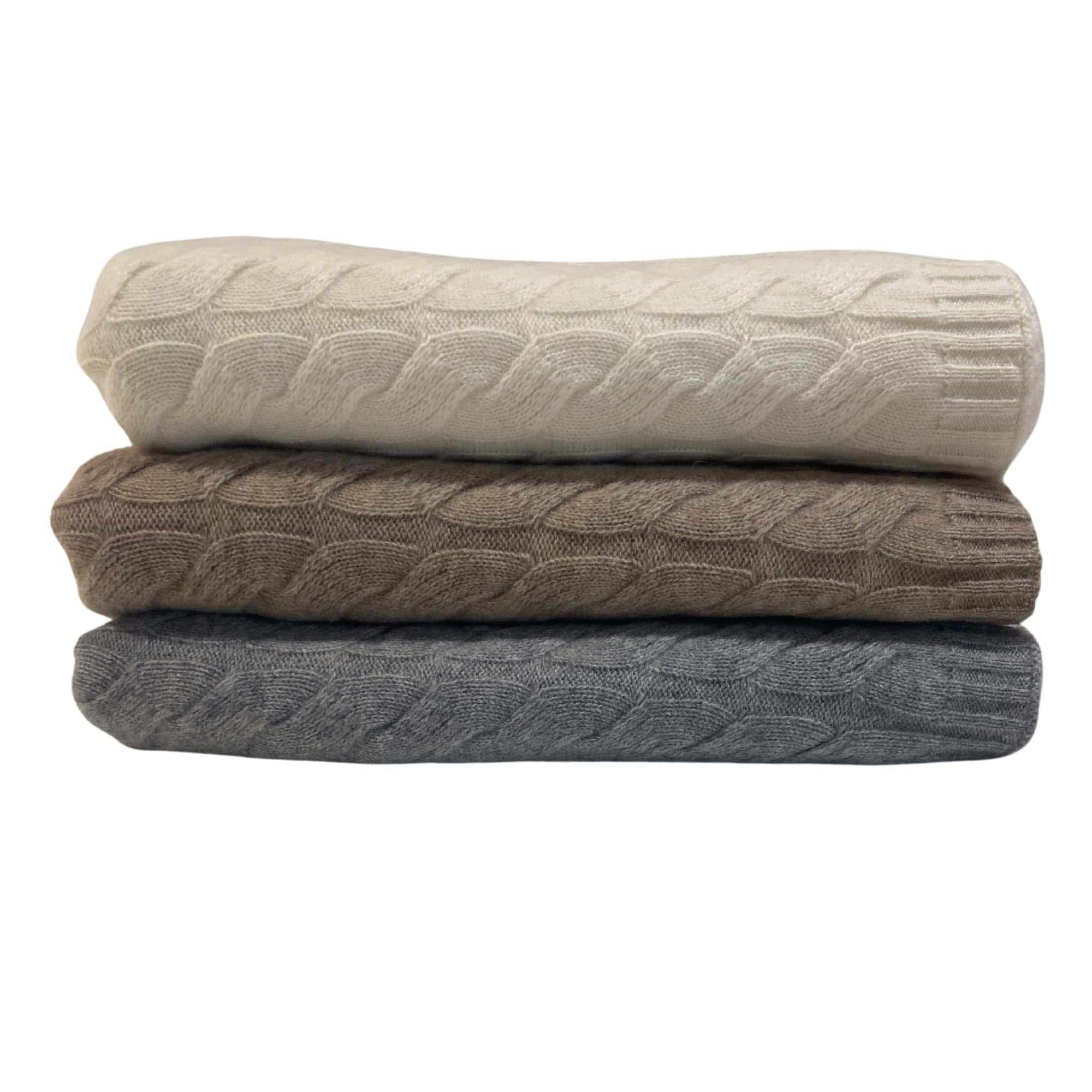 Manta de Punto de Cable 100% Cachemira de Lujo – Ultra