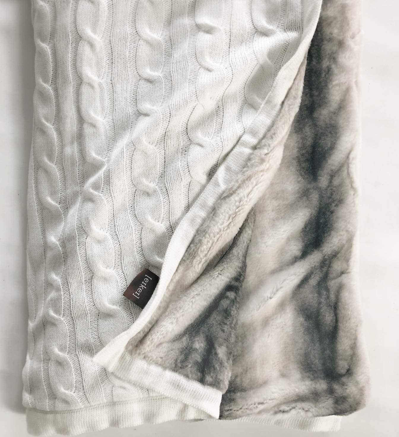 Manta de diseño clásico con reverso de sherpa y un añadido de un increíblemente suave patrón de punto de cable de acrílico y algodón. Doble forrada con cada lado proporcionando una textura suave y cálida. Peso medio que no es ni demasiado pesado ni demasiado ligero. Elige entre un tono atemporal blanco roto, un vibrante azul turquesa o un color gris elefante que complementará prácticamente cualquier decoración. Manta extragrande lo suficientemente larga para cubrir tus pies y hacer de ella una adición acogedora a tu sofá en una noche fría. Fácil cuidado: lavable a máquina y secable, es todo lo que podrías desear en una manta y el patrón familiar se siente reconfortante, lo que la convierte en un hermoso pero también conveniente regalo para las fiestas, aniversarios o cumpleaños. Diseñada por Eikei Home, EE. UU.