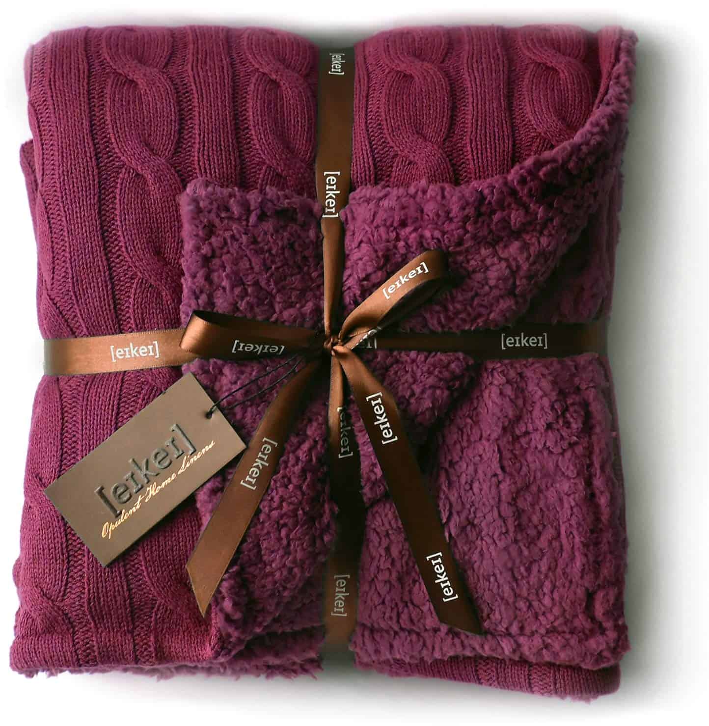 Manta de punto sherpa de diseño clásico con un bono adicional de patrón de punto de cable acrílico de algodón increíblemente suave. Doble forrada con cada lado proporcionando una textura suave y cálida. Peso mediano que no es ni demasiado pesado ni demasiado ligero. Elija entre el atemporal tono blanco hueso, el vibrante azul turquesa o un color gris elefante que complementará prácticamente cualquier decoración. Manta extragrande que es lo suficientemente larga para cubrir sus pies y la hace una adición acogedora a su sofá en una noche fría. Fácil cuidado: lavable y secable a máquina, es todo lo que podrías pedir en una manta y el patrón familiar se siente reconfortante, lo que la convierte en un hermoso y conveniente regalo para las vacaciones, aniversarios o cumpleaños. Diseñado por Eikei Home, EE. UU.