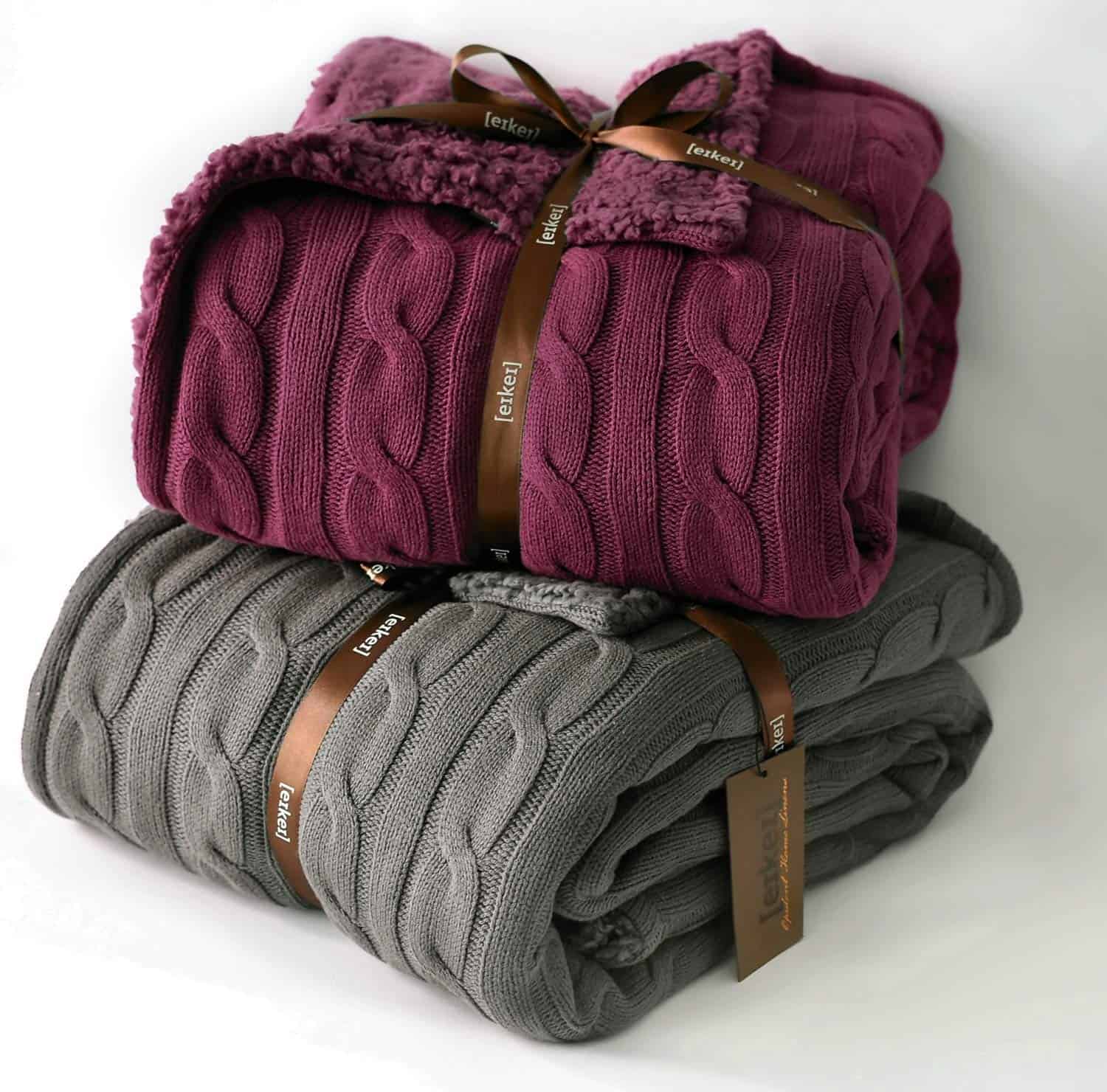 Manta de Punto de Cable de Lana de Oveja Sherpa Reversible
