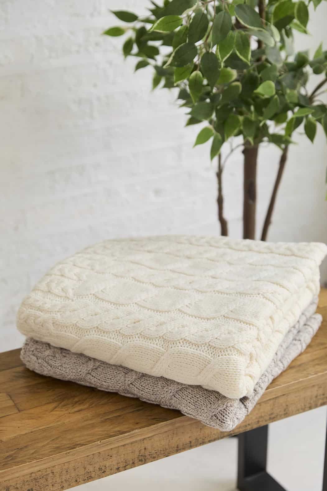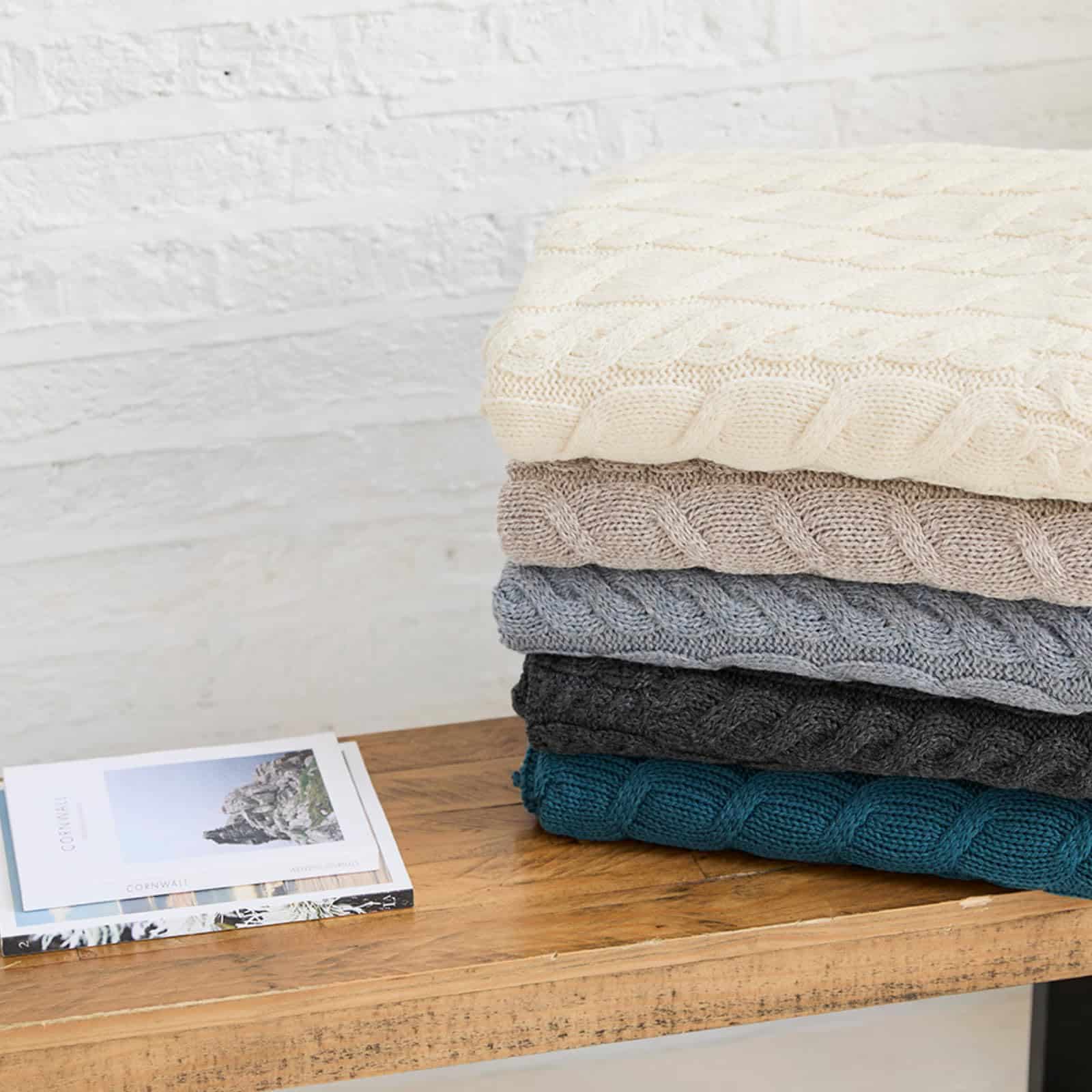 Manta de punto de cable irlandés de Aran Woollen Mills de