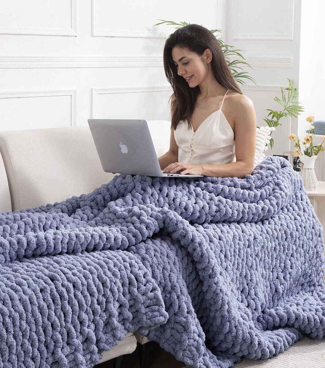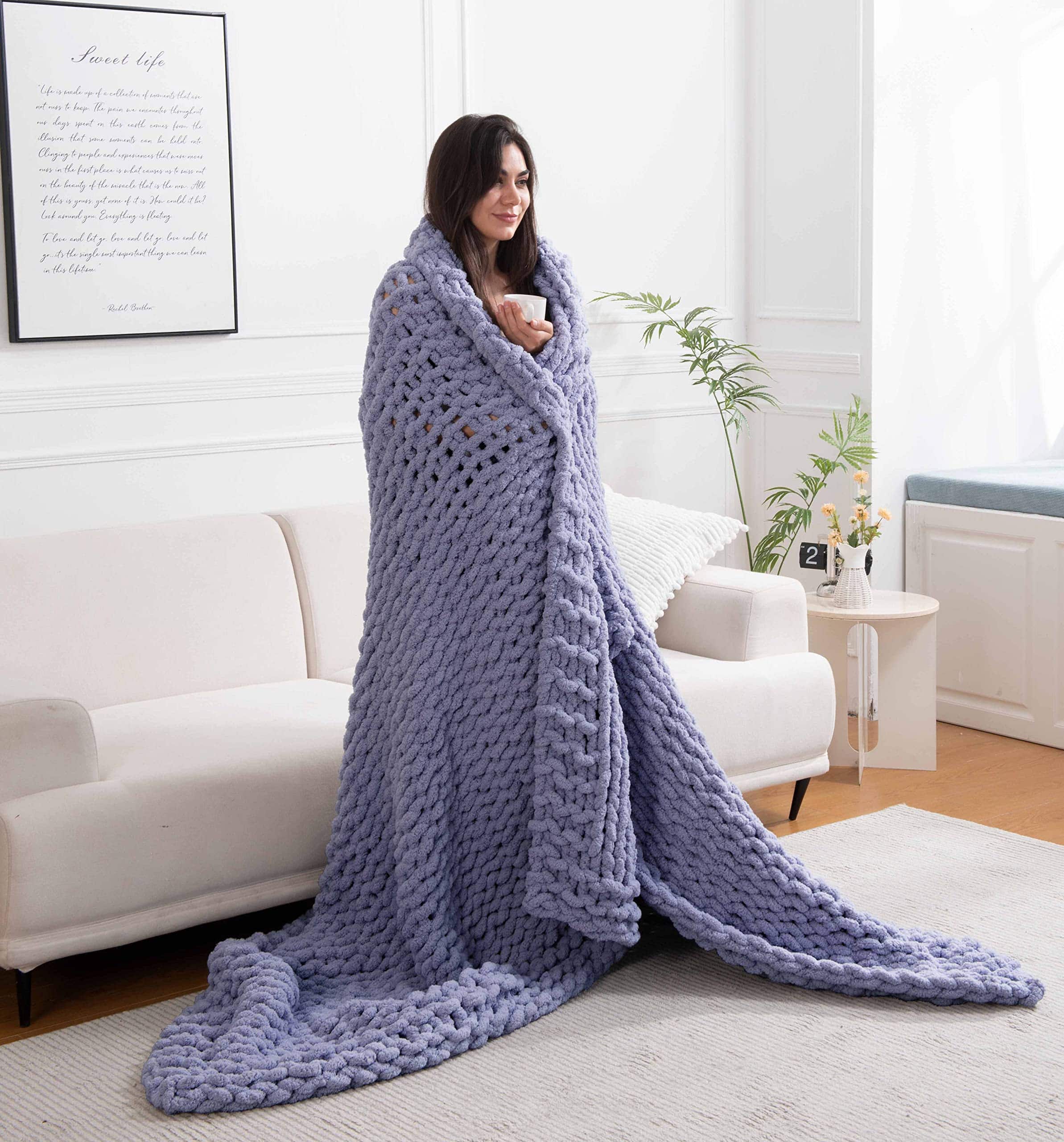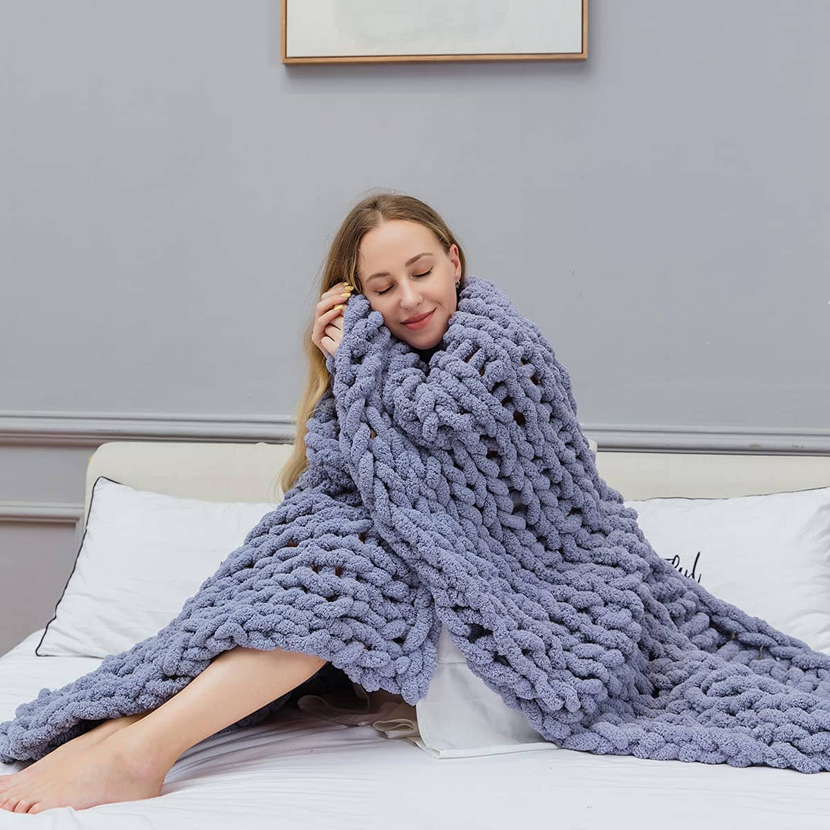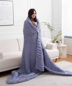 Manta de Punto Grueso Clootess Tejida a Mano con Hilo de