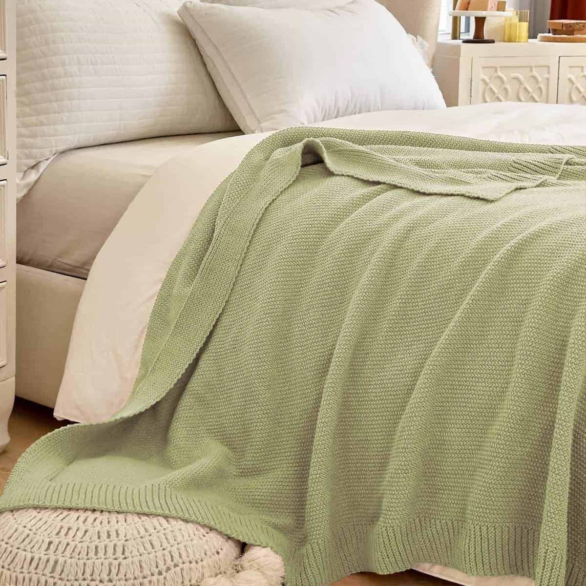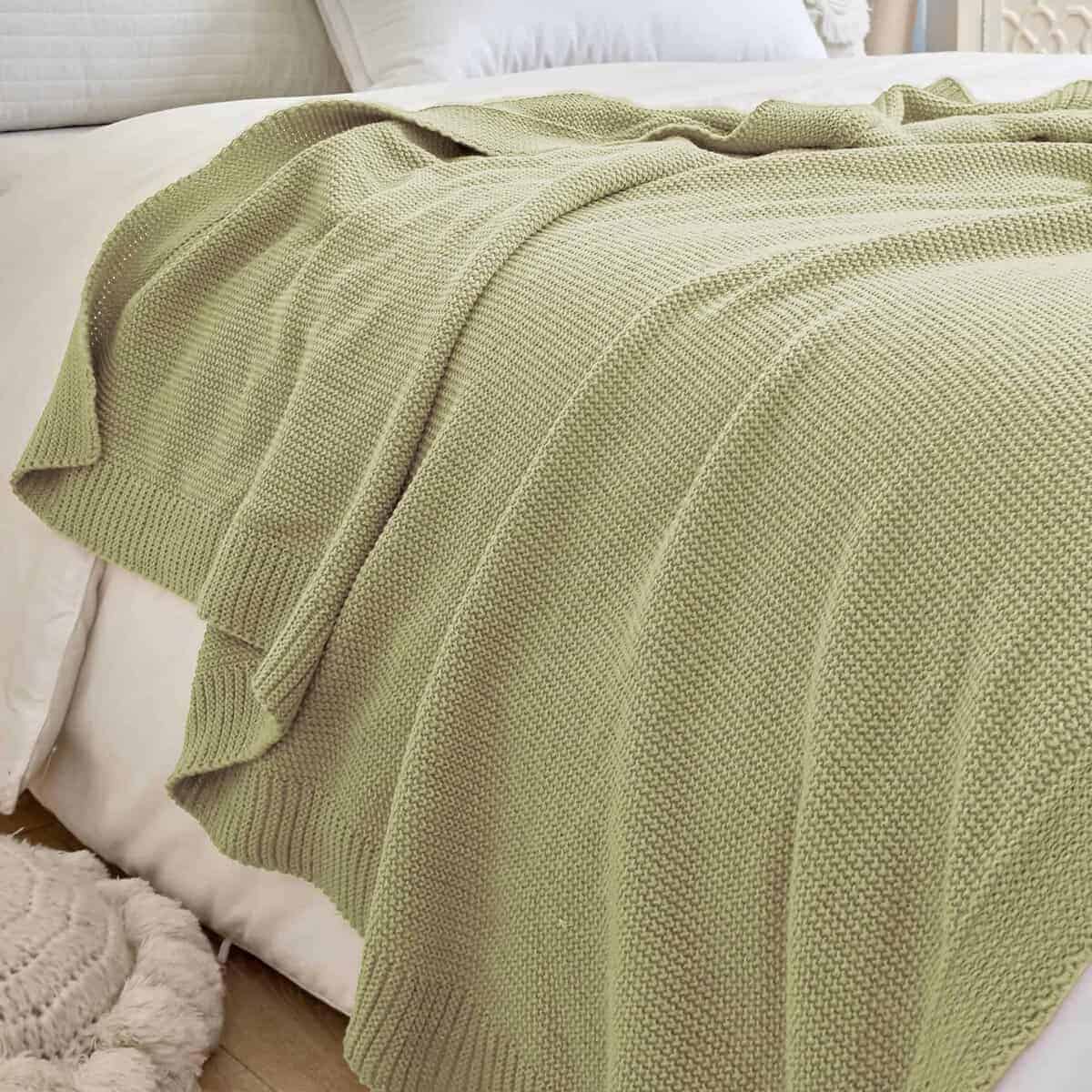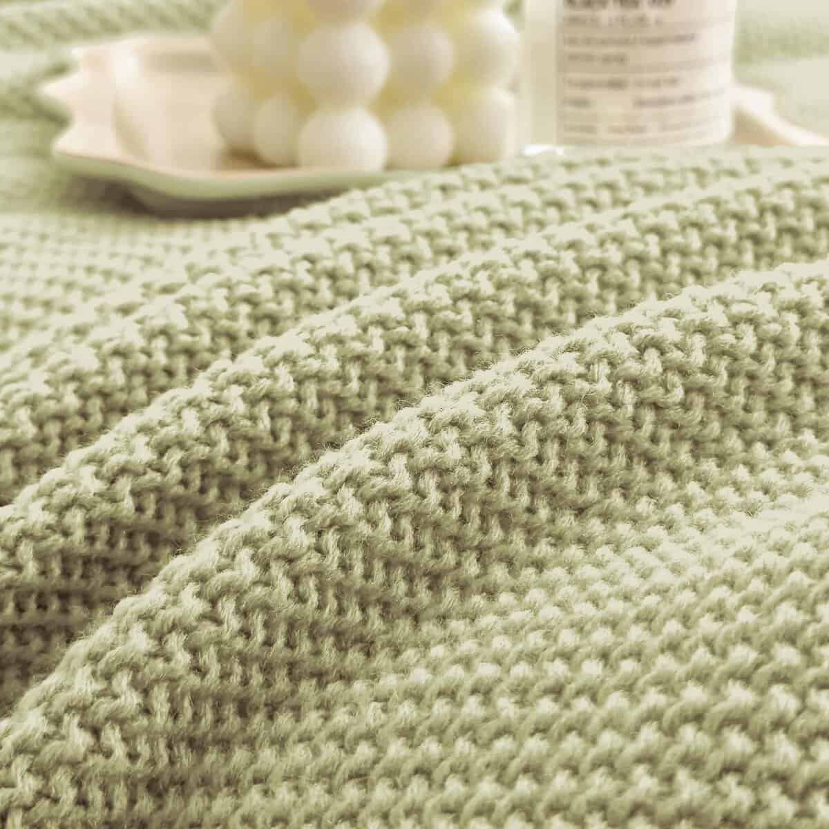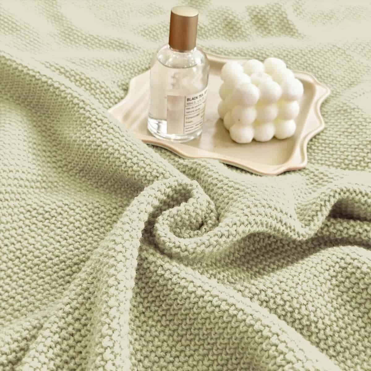 Manta de punto grueso en cable Verde Salvia Suave,