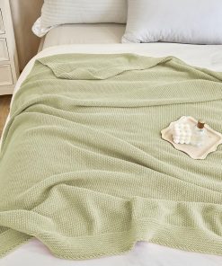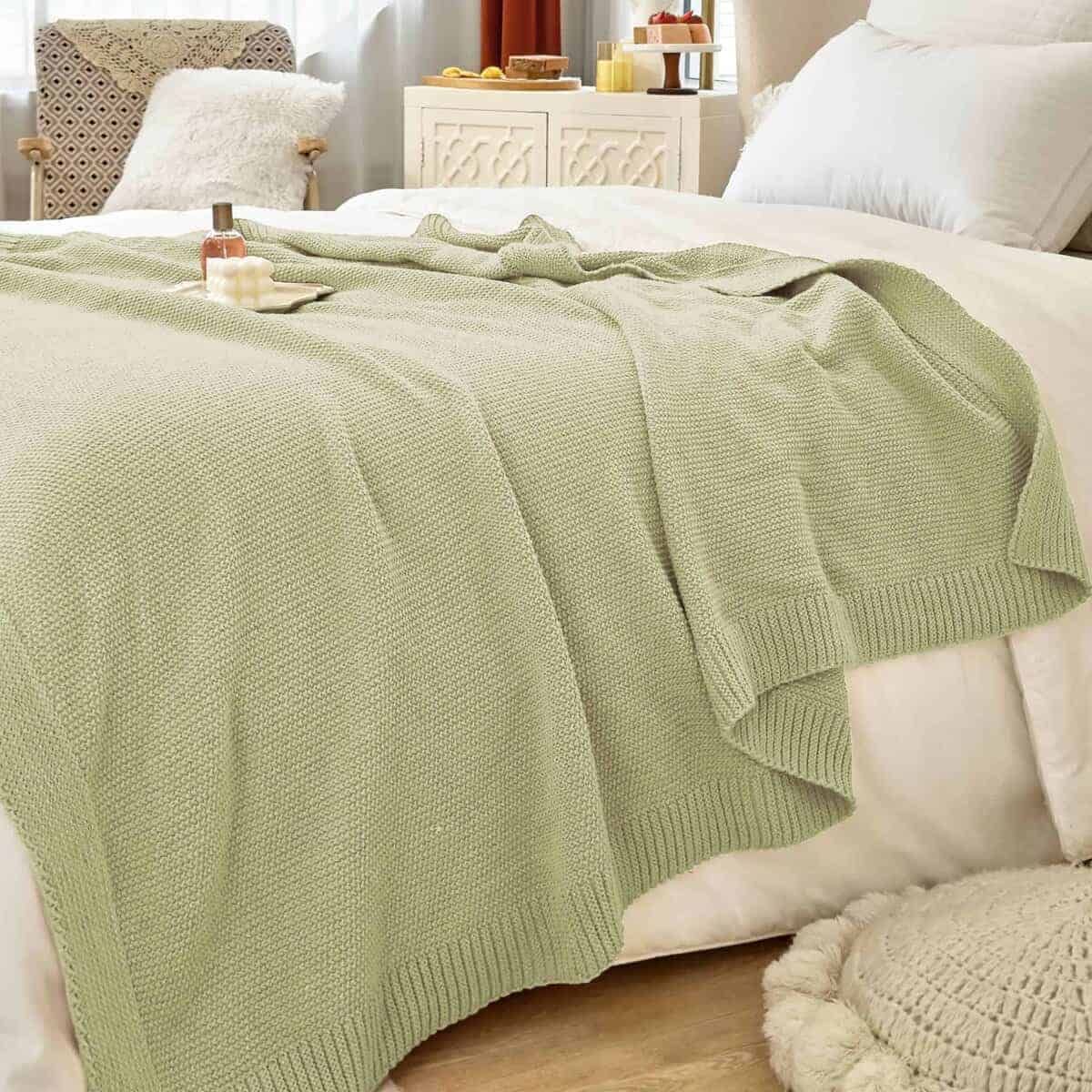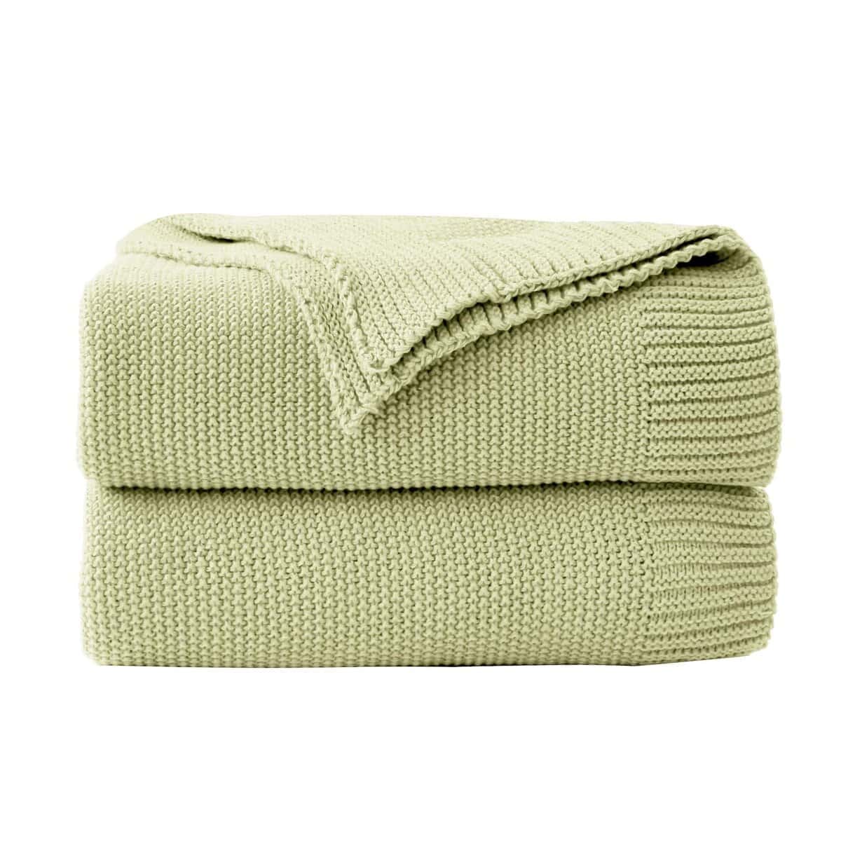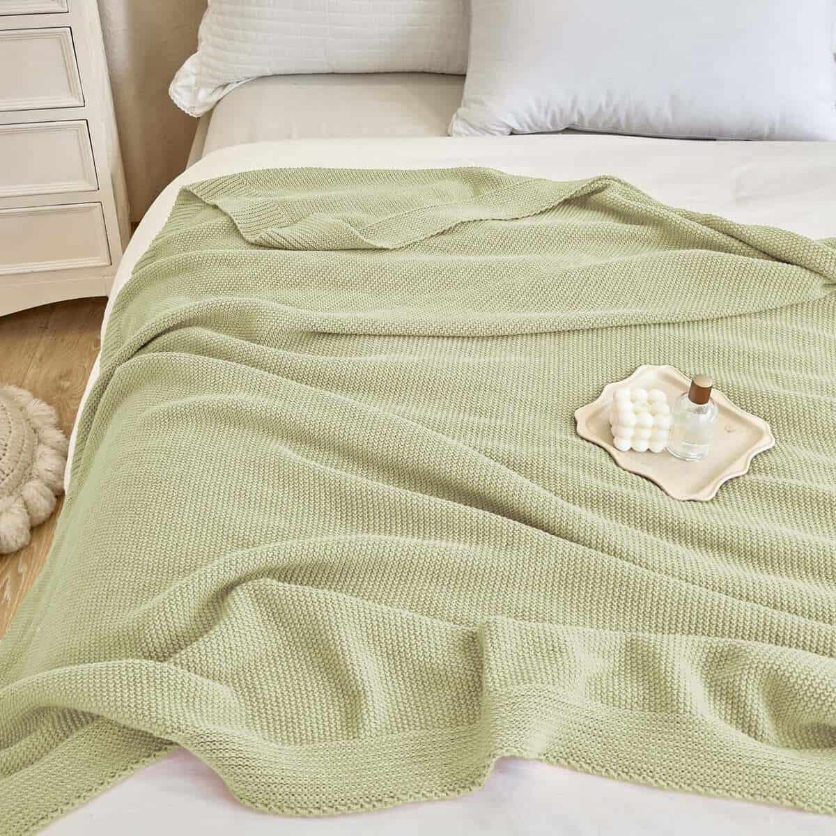 Manta de punto grueso en cable Verde Salvia Suave,