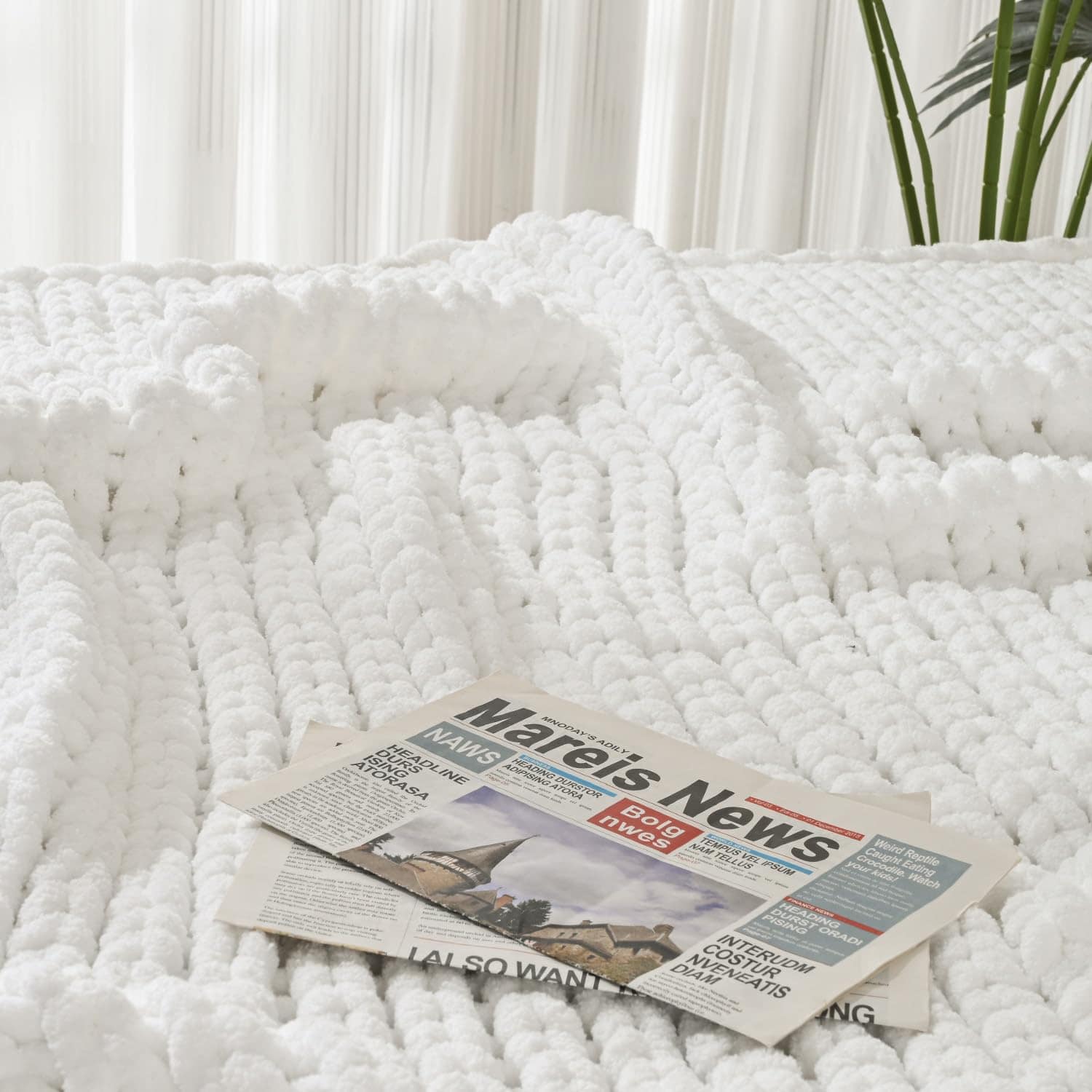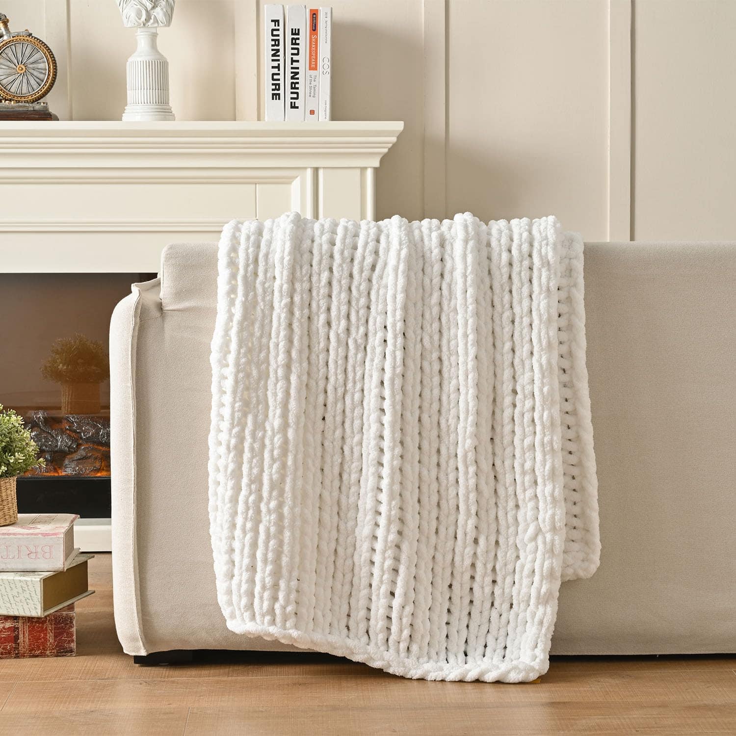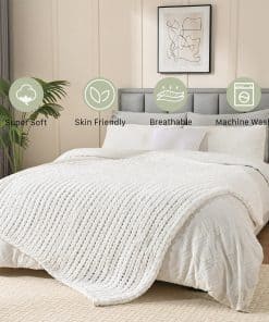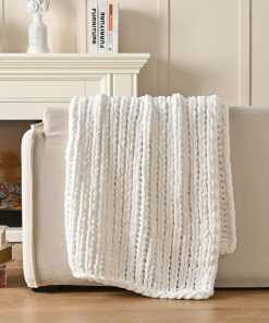 Manta de Punto Grueso Esterra 60″x80″, 100% -Blanco Nieve