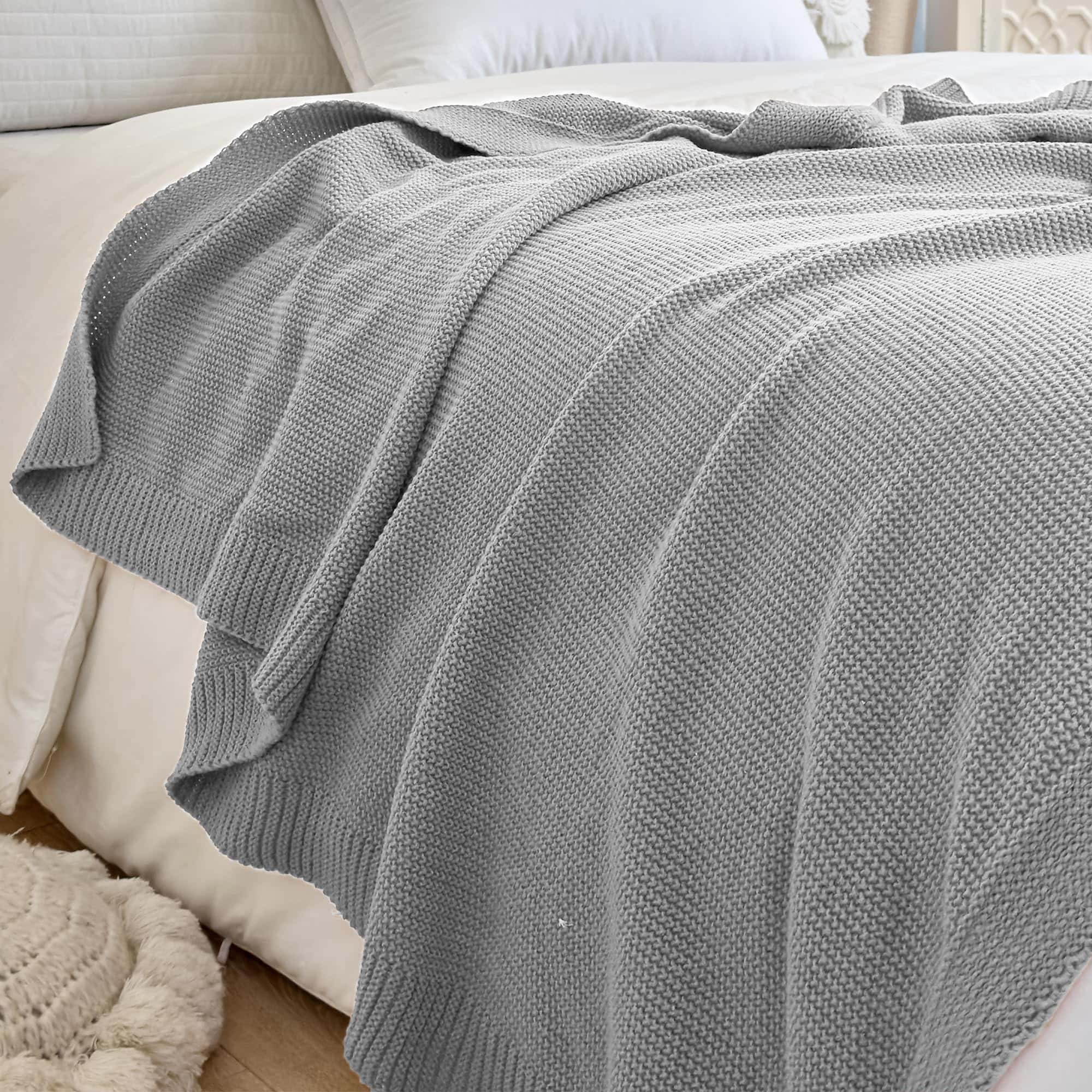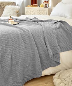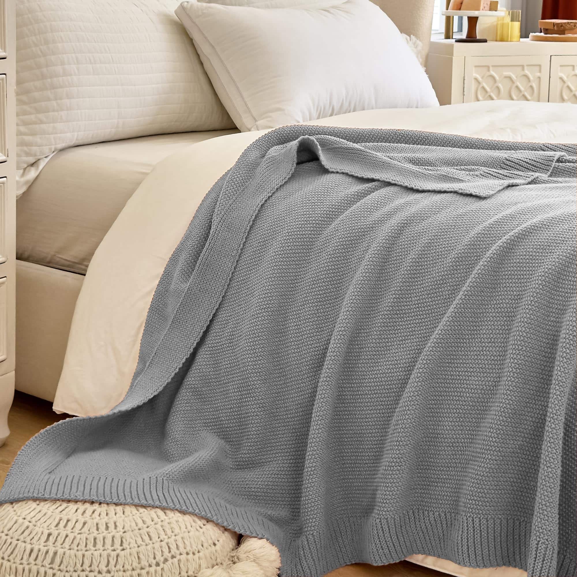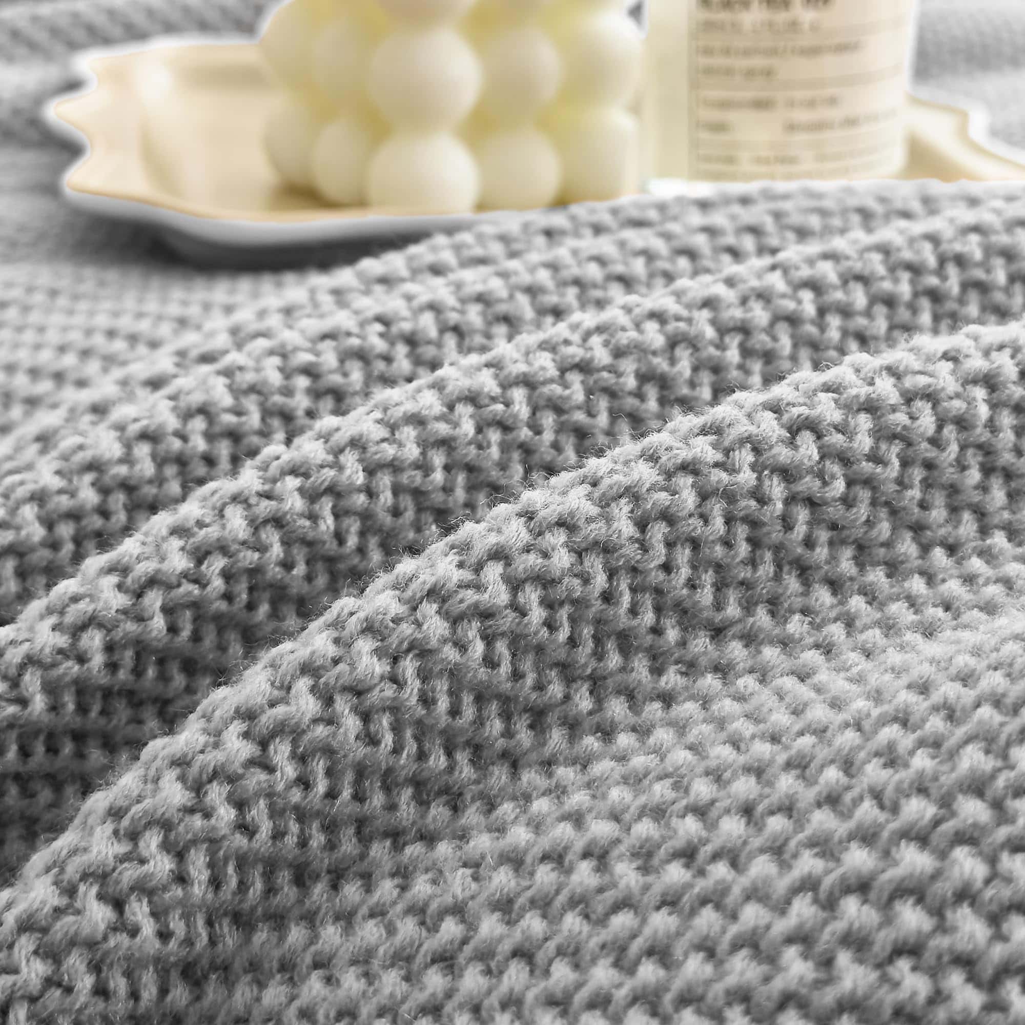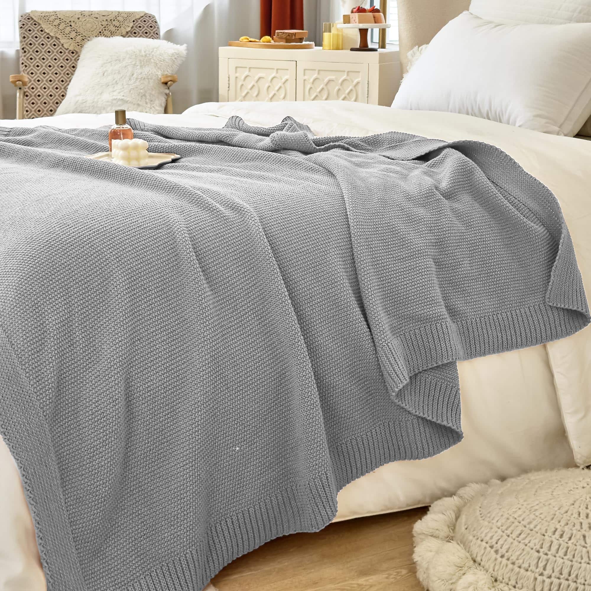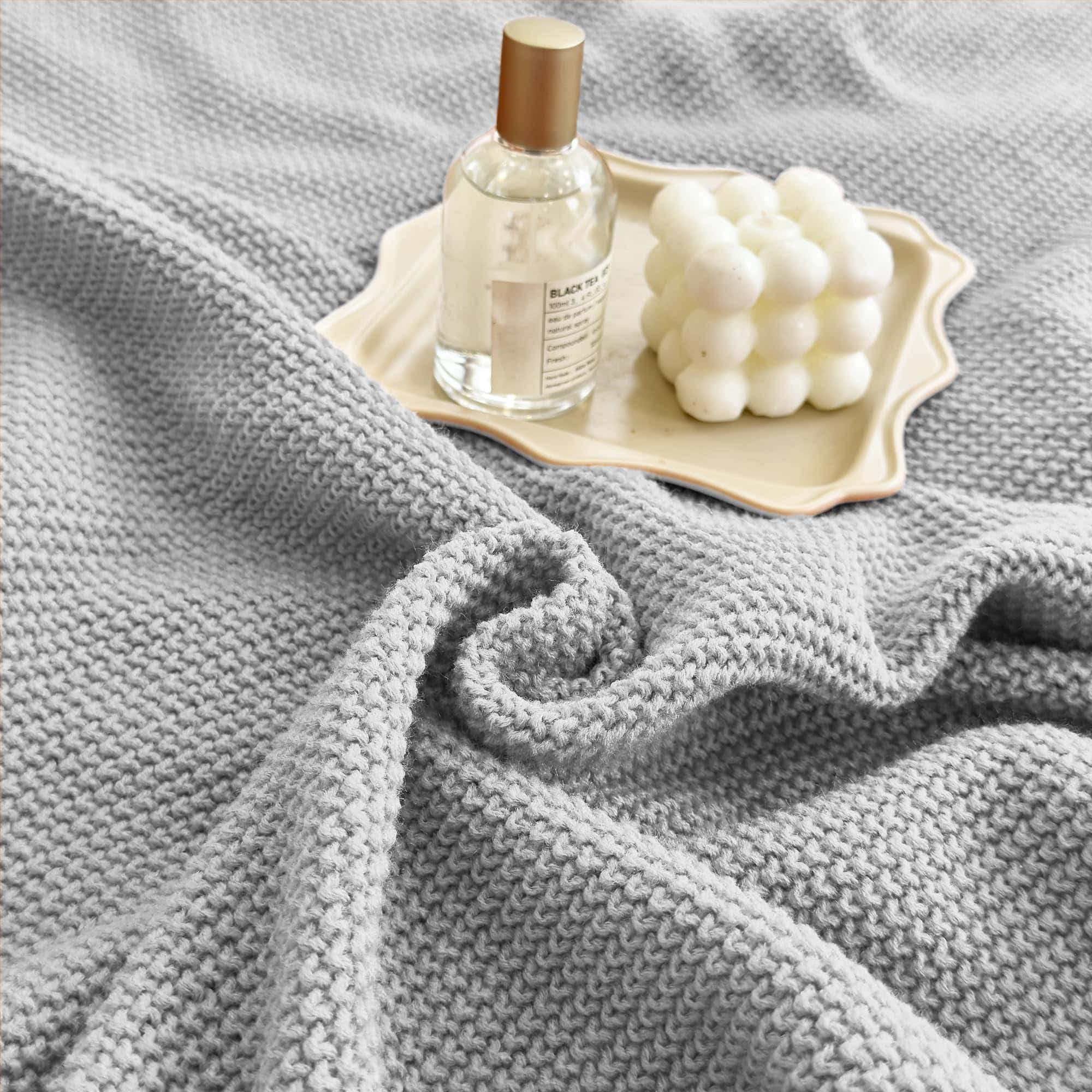 Manta de Punto Grueso Gris Suave y Acogedora para Cama