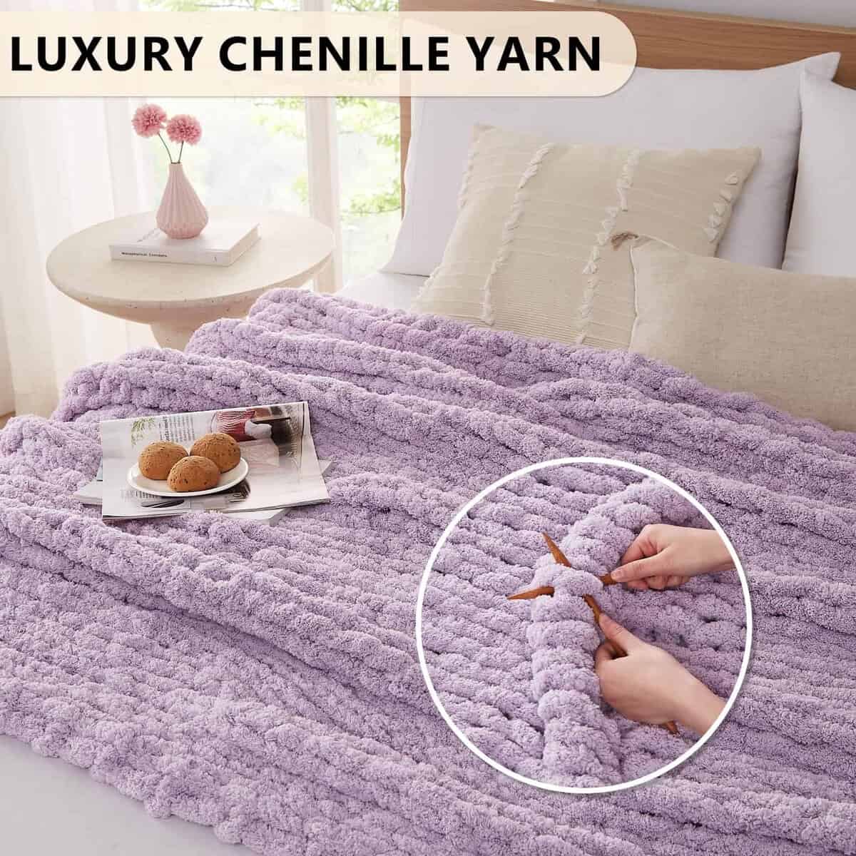 Manta de Punto Grueso L’AGRATY: 72»x84» -Morado