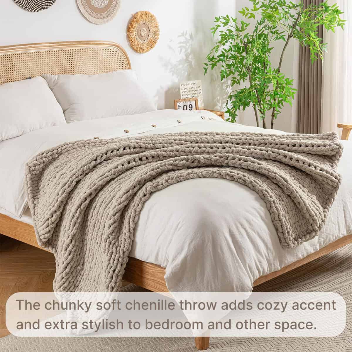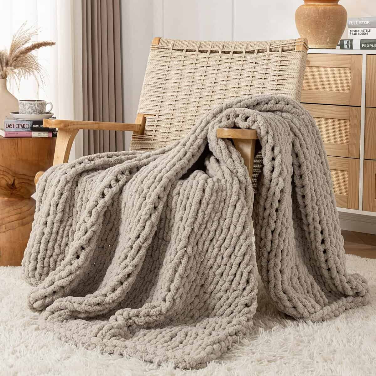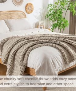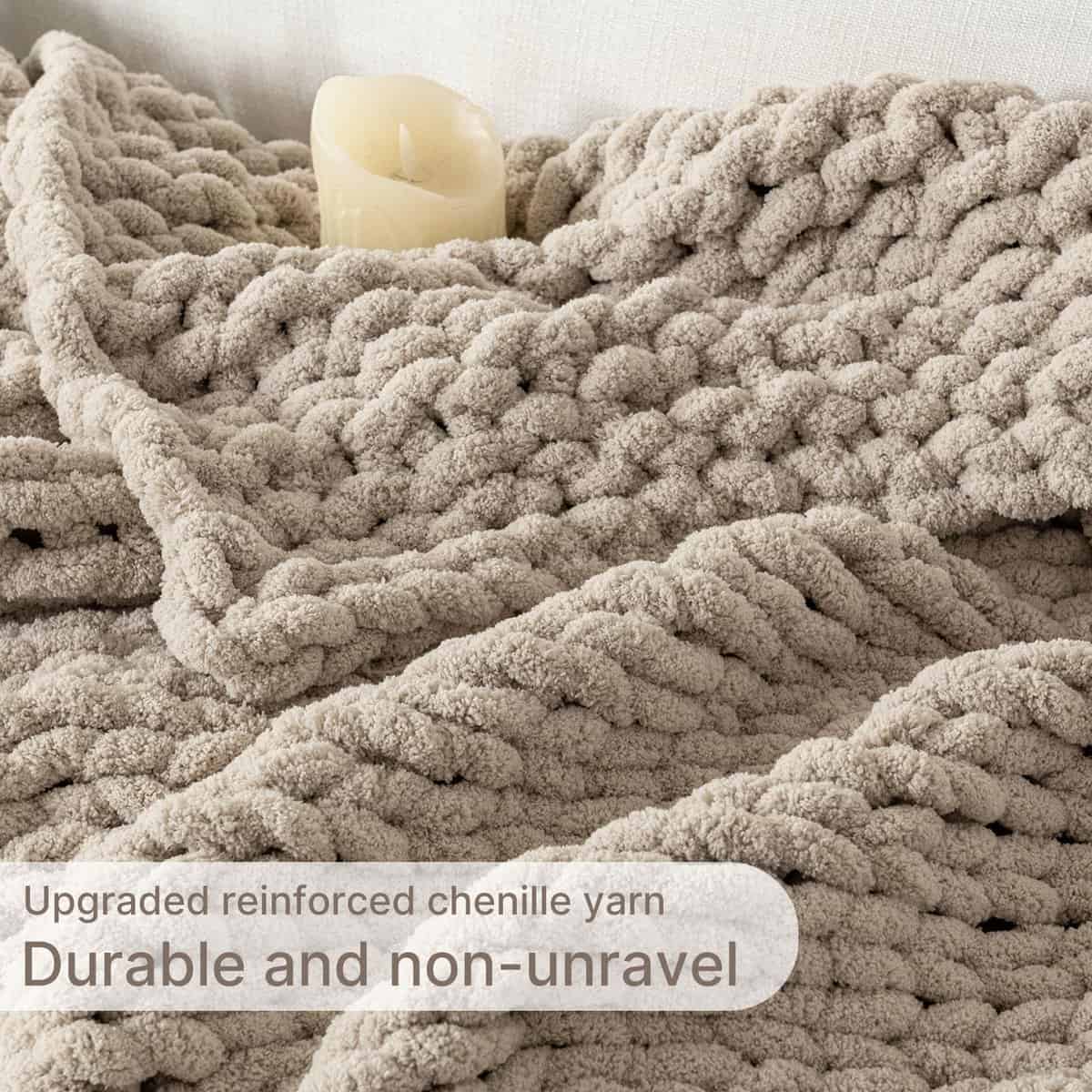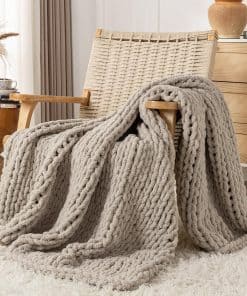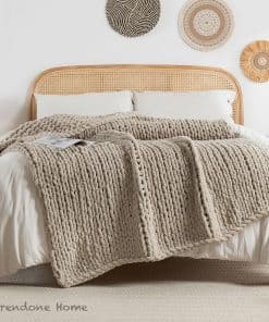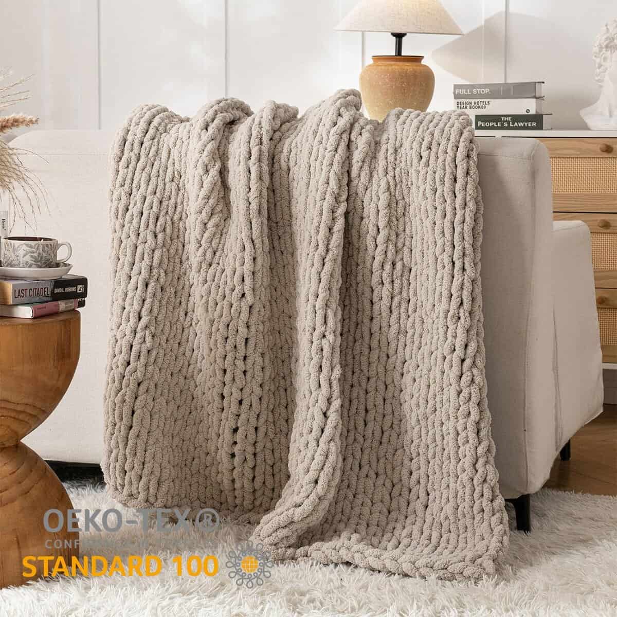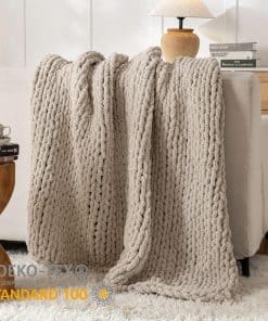 Manta de Punto Grueso LAST MODA, 100% Manta de -Beige Lino