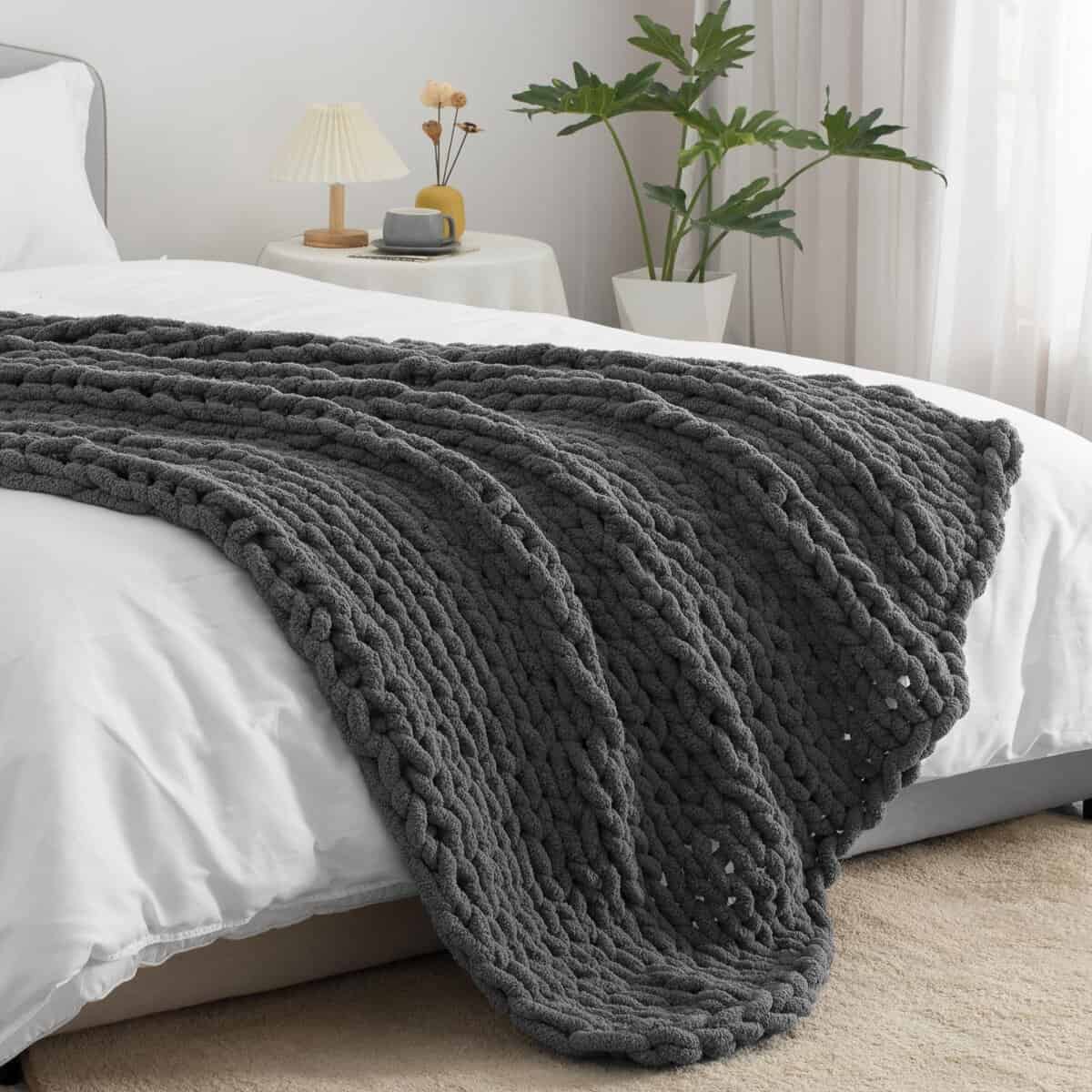 Manta de Punto Grueso para Sofá 60″X 80″, 100% Hecha a Mano con Hilo de Chenilla Suave, Mantas Gruesas de Punto de Cable de 6.7lbs, Grandes Mantas de Ganchillo de Nudo de Cuerda para Sofá Cama Decoración del Hogar, Gris Oscuro. Eleva la decoración de tu hogar con esta Manta de Punto Grueso. Su diseño lujoso y grueso de punto añade un toque acogedor y elegante a cualquier espacio vital, creando un ambiente cálido y acogedor. Elaborada a mano con meticulosa atención al detalle, esta Manta de Punto Grueso muestra una calidad excepcional. Hecha con materiales de alta calidad, ofrece durabilidad y comodidad duradera, asegurando que se mantenga como un objeto apreciado durante años. Esta Manta de Punto Grueso es increíblemente versátil. Ya sea que la uses para abrigarte en el sofá, añadir una capa extra de calor a tu cama, o como un accesorio decorativo, mejora sin esfuerzo el atractivo estético de cualquier habitación mientras proporciona comodidad y calidez. Sorprende a tus amigos y familiares con un regalo que combina estilo y funcionalidad. Esta Manta de Punto Grueso es un regalo considerado y lujoso para inauguraciones, bodas, cumpleaños o cualquier ocasión especial. Su diseño atemporal atrae a una amplia gama de gustos y preferencias. Disfruta de los beneficios de esta Manta de Punto Grueso sin la molestia de rutinas de limpieza complicadas. Es lavable a máquina y está diseñada para resistir el uso regular, garantizando conveniencia y facilidad de cuidado.