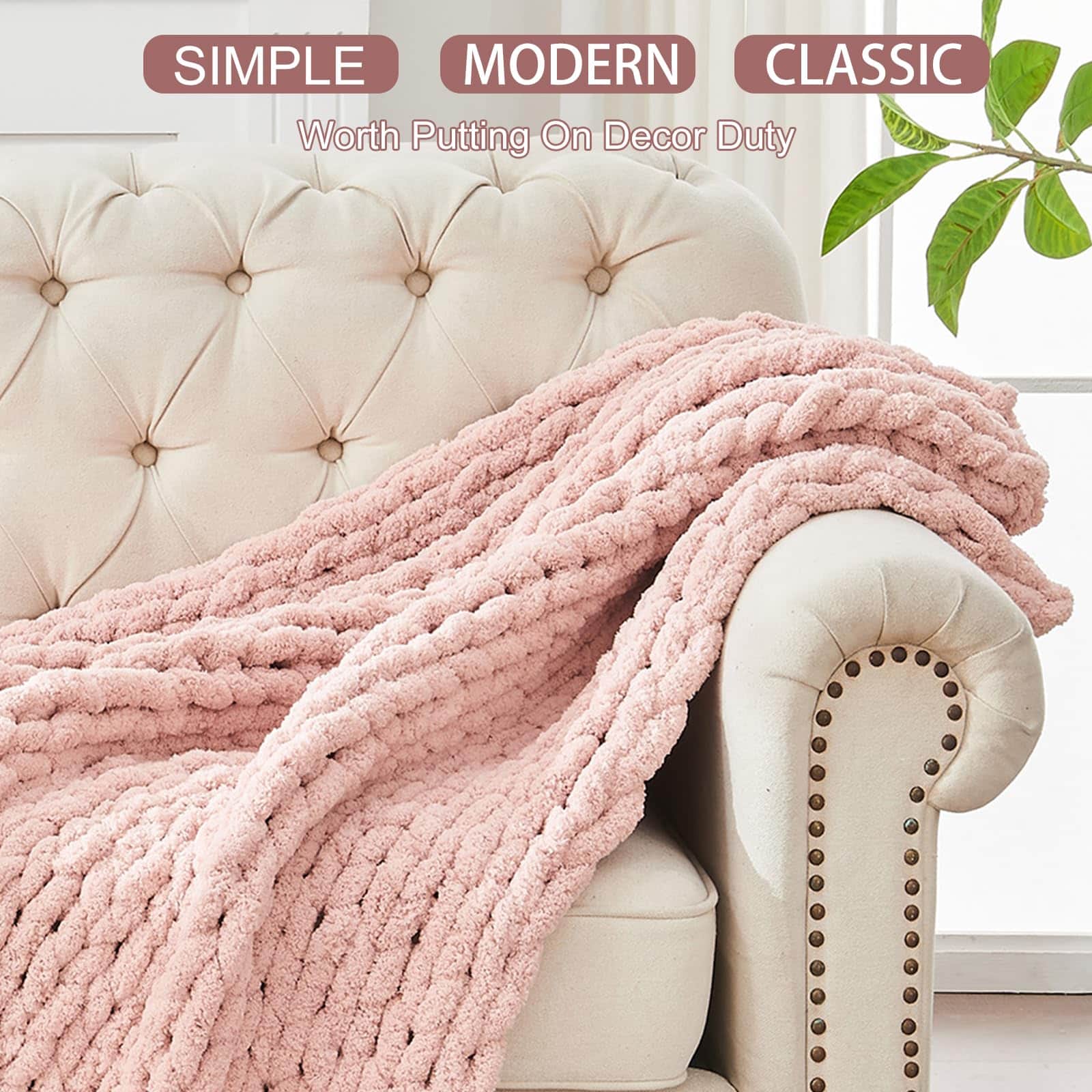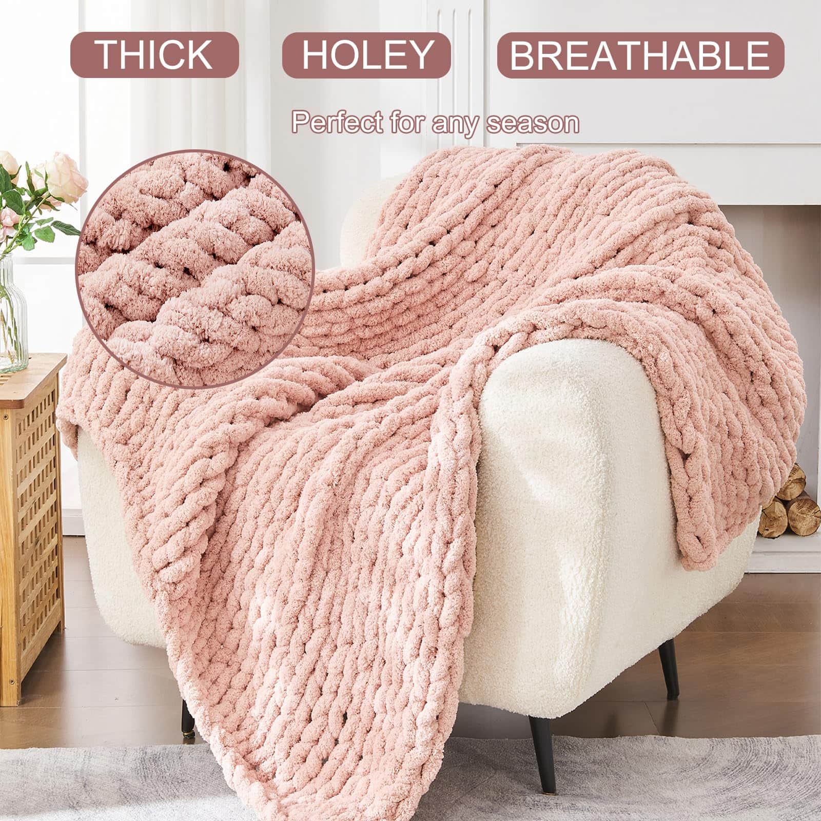 Esta manta de punto grueso PurPlaisir es perfecta para agregar calidez y comodidad a tu hogar. Hecha con hilo de Chenille ultra grueso y de gran tamaño, esta manta es suave al tacto y te hará sentir aún más cómodo en días fríos.
