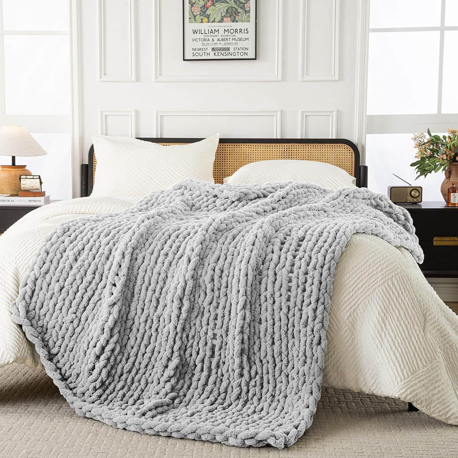 Experimente la elegancia atemporal de nuestra manta de punto grueso de alta calidad con hilo de chenille. Cada pieza es 100% hecha a mano, tejida con 100% Chenille. La manta es ultra suave y acogedora, garantizando la máxima comodidad en tu dormitorio o sala de estar. Sus propiedades de afinidad a la piel la convierten en la elección perfecta para abrazarse y mantenerse caliente durante las noches frías.