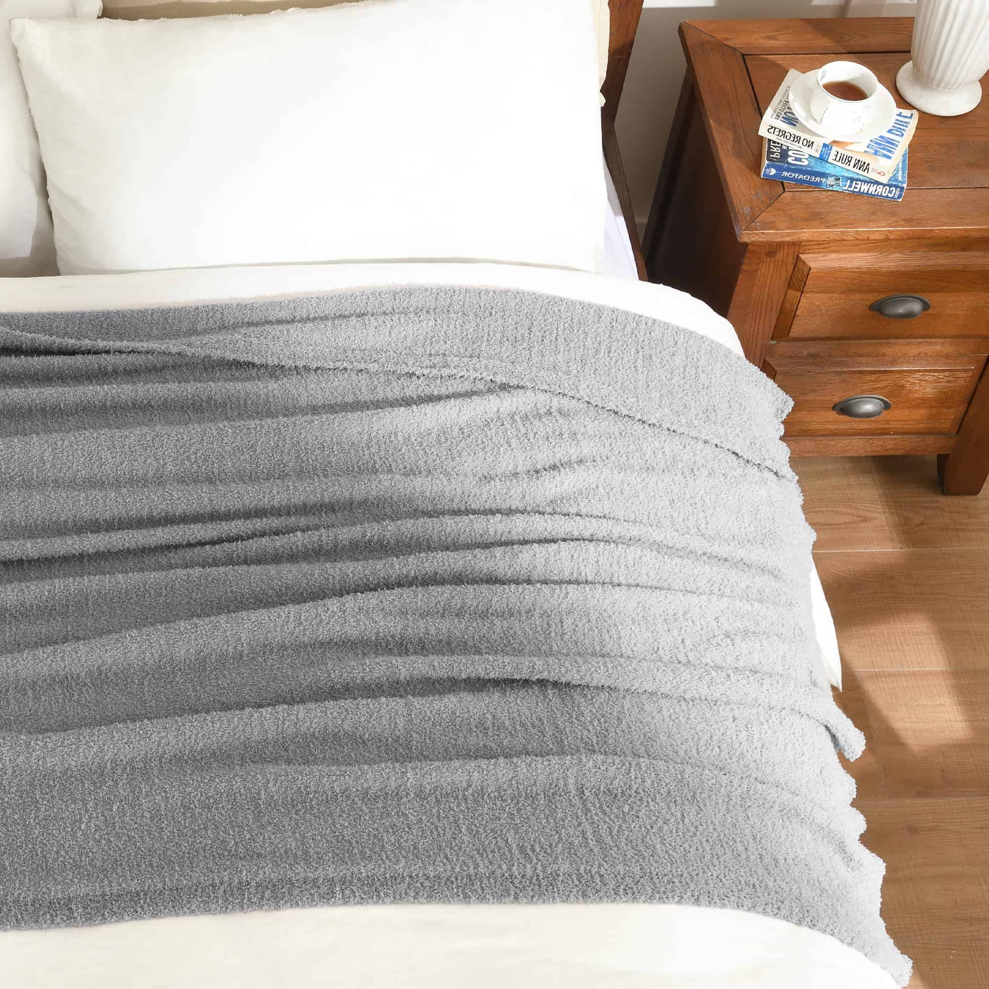 2. Tamaño Estándar: La manta de 50 pulgadas x 60 pulgadas es lo suficientemente grande para adaptarse a niños, adultos o ancianos. Es moderadamente gruesa, el peso es de aproximadamente 0.8-0.85kg/1.76-1.87 lb. La manta puede cubrir todo el cuerpo. Aún puede mantenerse transpirable y cálido sin sentirse pesado. Incluso sus mascotas adorarán esta manta y vale la pena tenerla.